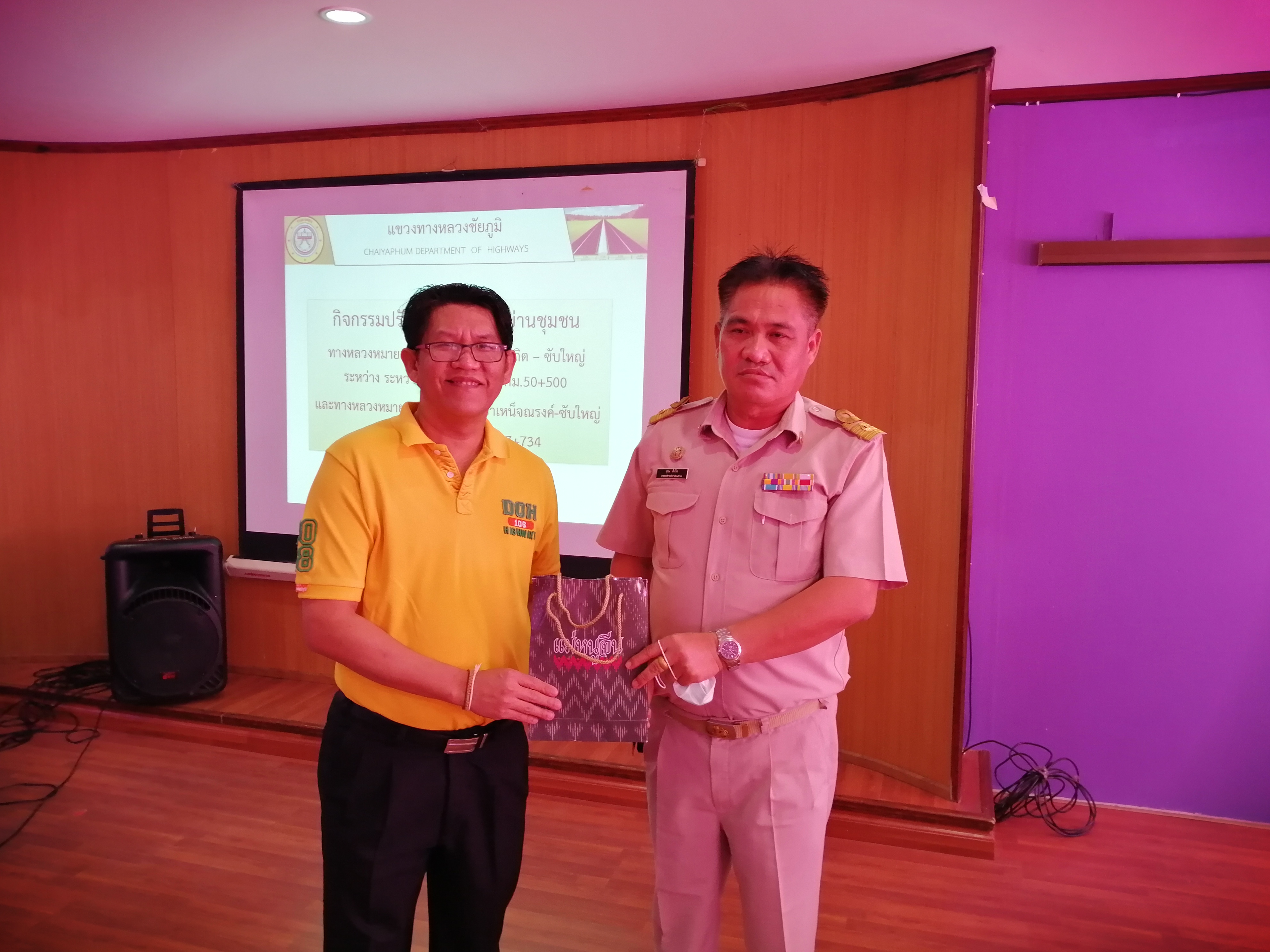 วันที่ 23 พฤศจิกายน 2563 เวลา 09.30 น. นายวันปิยะ ภุมมะภูติ ผู้อำนวยการแขวงทางหลวงชัยภูมิ จัดโครงการการมีส่วนร่วมของประชาชน กิจกรรมปรับปรุงทางหลวงผ่านย่านชุมชน ทางหลวงหมายเลข ในทางหลวงหมายเลข 2354 ตอน เทพสถิต – ซับใหญ่ ระหว่าง กม.49+499 – กม.50+500 และทางหลวงหมายเลข 2069 ตอน บำเหน็จณรงค์ – ซับใหญ่ ระหว่าง กม.17+300 – กม.17+734 ในท้องที่ตำบลซับใหญ่ อําเภอซับใหญ่ ณ ห้องประชุมชั้น 1 ที่ว่าการอำเภอซับใหญ่ ตำบลซับใหญ่ อำเภอซับใหญ่ ในการนี้ได้รับเกียรติจากนางสาวอ้อยใจ คำบุญเรือง นายอำเภอซับใหญ่ เป็นประธานในที่ประชุม