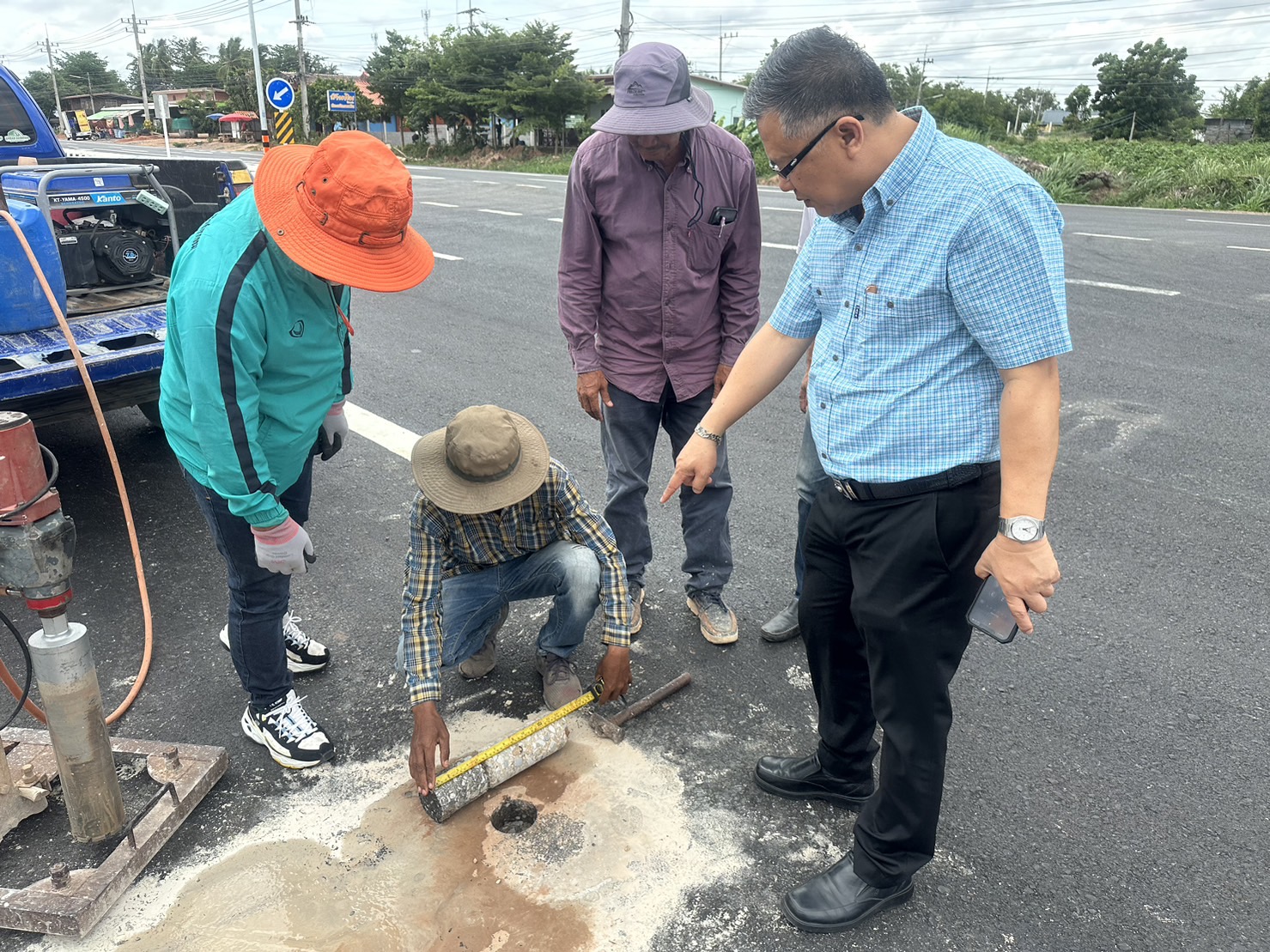นายเอนก สุวรรณภูเต รองผู้อำนวยการสำนักงานทางหลวงที่ 7 (ขอนแก่น) ตำแหน่งที่ 2 ประธานกรรมการร่วมกับคณะกรรมการดำเนินการตรวจรับพัสดุ รหัสงาน 12100 งานก่อสร้างเพิ่มประสิทธิภาพทางหลวง ทางหลวงหมายเลข 205 ตอน คำปิง - หนองบัวโคก ระหว่าง กม.164+923 - กม.166+000 ตามสัญญาที่ ชภ.(จ) 13/2566 ลงวันที่ 28 พฤศจิกายน 2565 ผู้รับจ้าง โดย ห้างหุ้นส่วน จำกัด สวรรค์ประทานพรขนส่ง