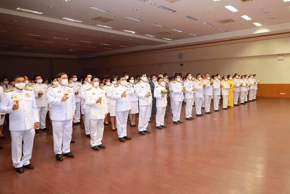 เจ้าหน้าที่ สำนักงานทางหลวงที่ 7 ร่วมพิธีวางพานพุ่มและถวายบังคมเนื่องในวันคล้ายวันพระบรมราชสมภพ พระบาทสมเด็จพระชนกาธิเบศร มหาภูมิพลอดุลยเดชมหาราช บรมนาถบพิตร วันชาติและวันพ่อแห่งชาติ 5 ธันวาคม 2563