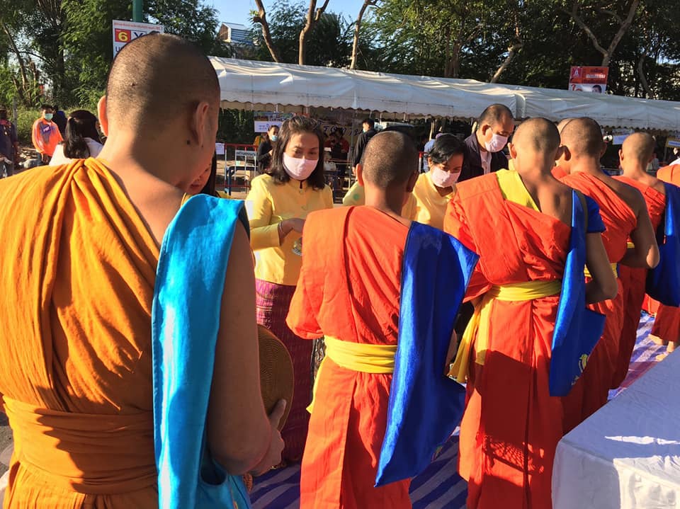 เจ้าหน้าที่ สำนักงานทางหลวงที่ 7 ร่วมพิธีทำบุญตักบาตร ถวายพระราชกุศลเนื่องในวันคล้ายวันพระบรมราชสมภพ พระบาทสมเด็จพระชนกาธิเบศร มหาภูมิพลอดุลยเดชมหาราช บรมนาถบพิตร วันชาติและวันพ่อแห่งชาติ 5 ธันวาคม 2563