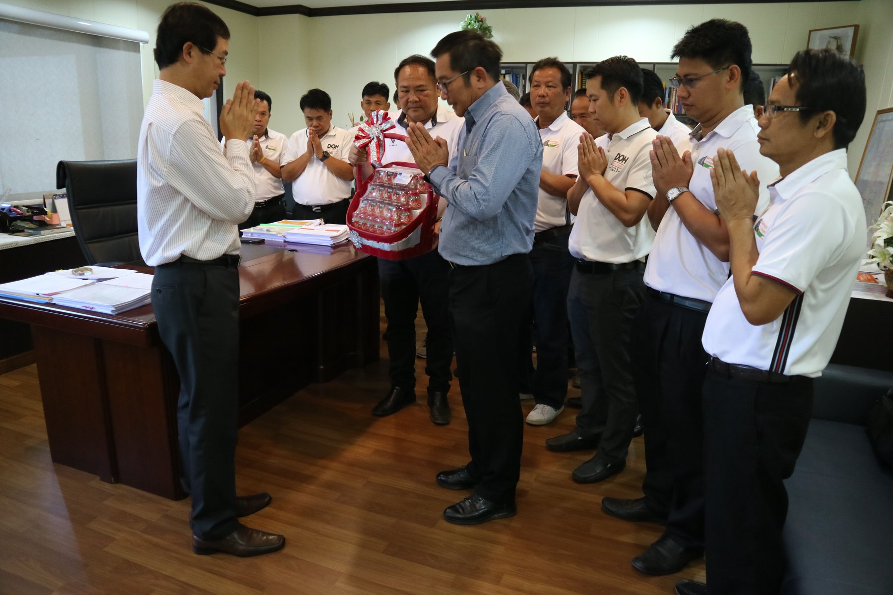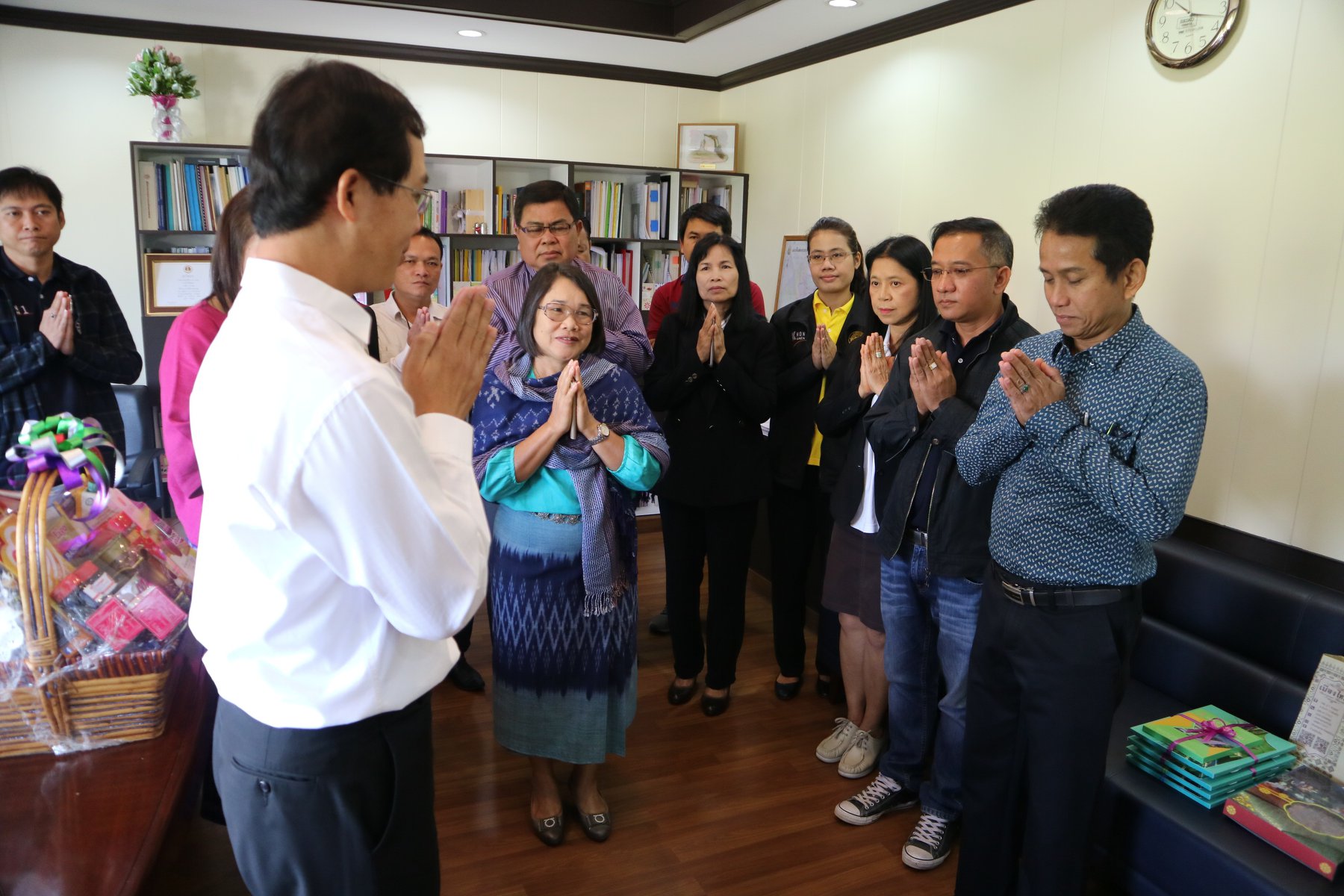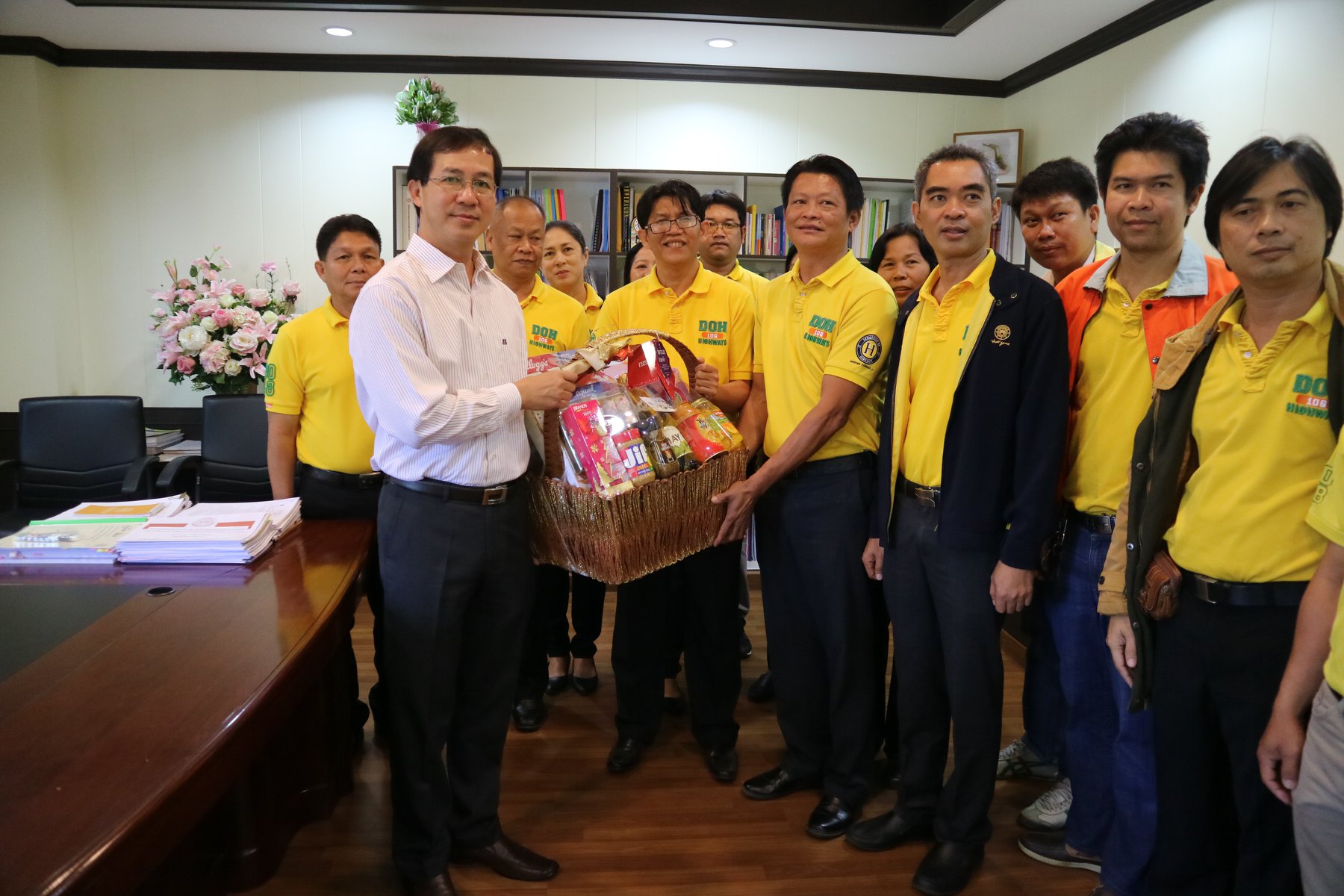 เข้ามอบกระเช้า และสวัสดีปีใหม่ ขอพร จากนายพินิจ แก้วมาคูณ ผู้อำนวยการสำนักงานทางหลวงที่ 7 (ขอนแก่น)
