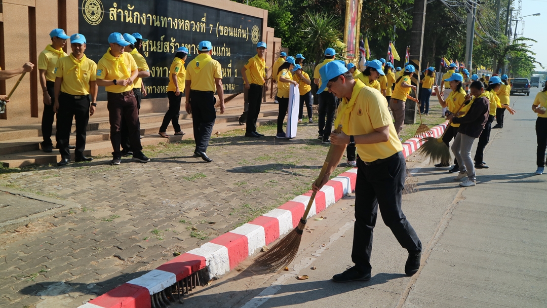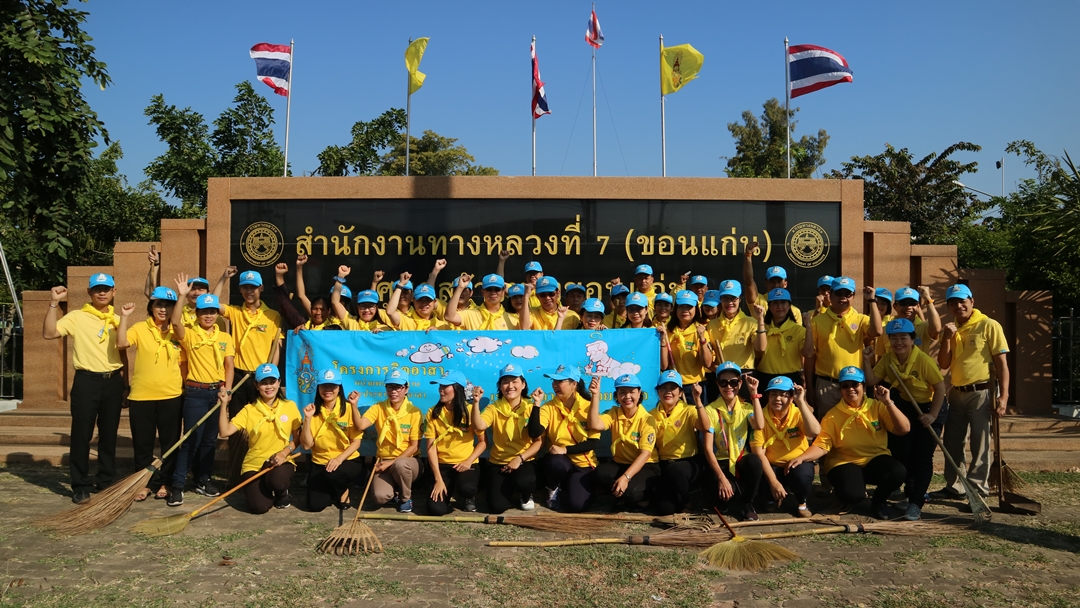 นายพินิจ แก้วมาคูณ ผู้อำนวยการสำนักงานทางหลวงที่ 7 (ขอนแก่น) พร้อมด้วย นายธวัชชัย พรไพรินทร์, นายเกรียงศักดิ์ ตันปิยะกุล รองผู้อำนวยการสำนักงานทางหลวงที่ 7 ตำแหน่งที่ 1 และ 2 นำข้าราชการ พนักงานราชการ เจ้าหน้าที่ เข้าร่วมกิจกรรมบำเพ็ญสาธารณประโยชน์จิตอาสา โดยร่วมกันทำความสะอาดบริเวณรอบอาคารสำนักงาน และถนนด้านข้างสำนัก เพื่อเป็นการแสดงความจงรักภักดีของประชาชนที่มีต่อ พระบาทสมเด็จพระบรมชนกาธิเบศร มหาภูมิพลอดุลยเดชมหาราช บรมนาถบพิตร