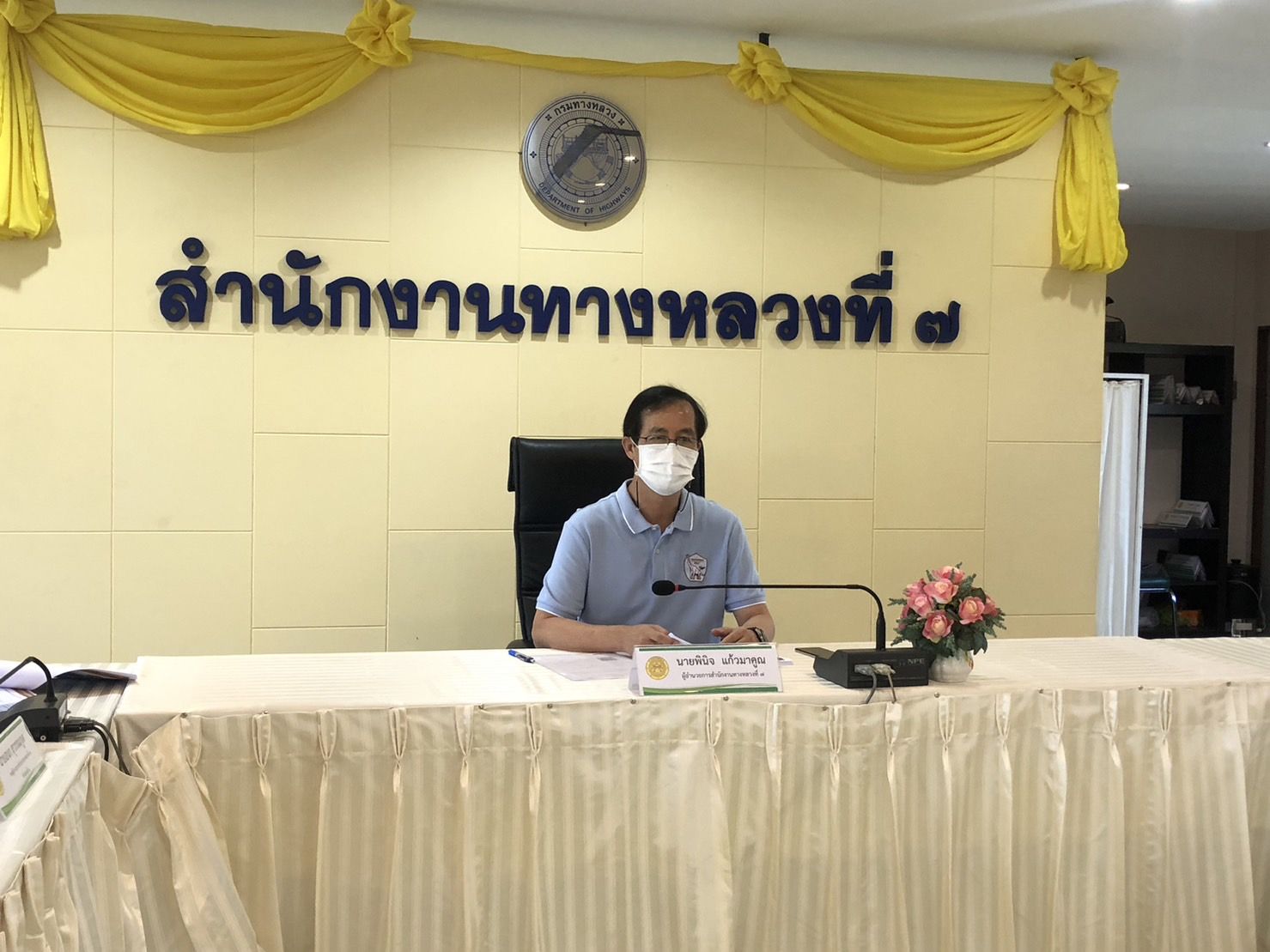 นายพินิจ แก้วมาคูณ ผู้อำนวยการสำนักงานทางหลวงที่ 7 (ขอนแก่น) พร้อมด้วย นายเอนก สุวรรณภูเต รองผู้อำนวยการสำนักงานทางหลวงที่ 7 ตำแหน่งที่ 2 นายธีรวัฒน์ พีระพัฒนพงษ์ ผู้อำนวยการส่วนสำรวจและออกแบบ และข้าราชการเจ้าหน้าที่ในสังกัด เข้าร่วมการประชุมผ่านระบบ Video Conference เพื่อเตรียมความพร้อมแผนการดำเนินงานงบประมาณรายจ่ายประจำปี งบประมาณ พ.ศ.2567 ณ ห้องประชุมสำนักงานทางหลวงที่ 7 ชั้น 3