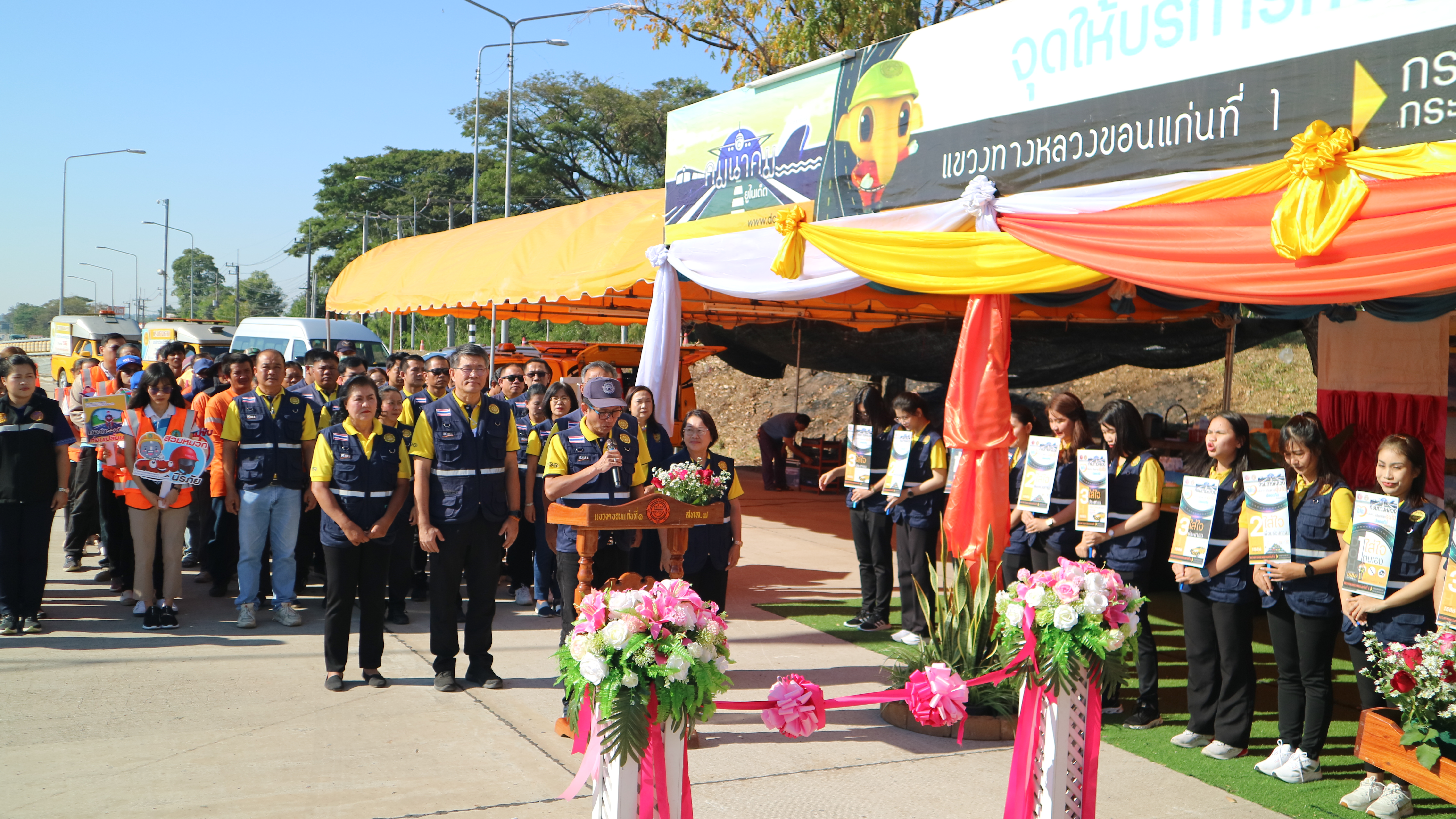 โดยมี นายสิโรตม์ แดงภูมี ผู้อำนวยการแขวงทางหลวงขอนแก่นที่ 1 กล่าวเปิดงาน รายงานความพร้อมจุดให้บริการประชาชน