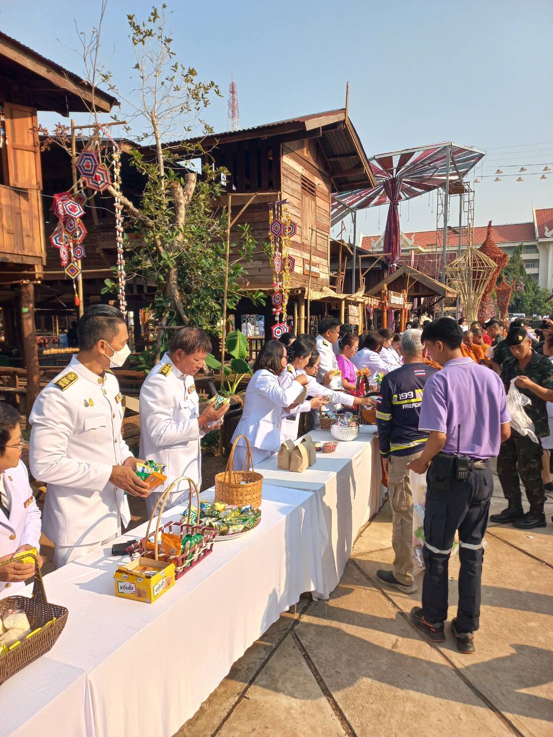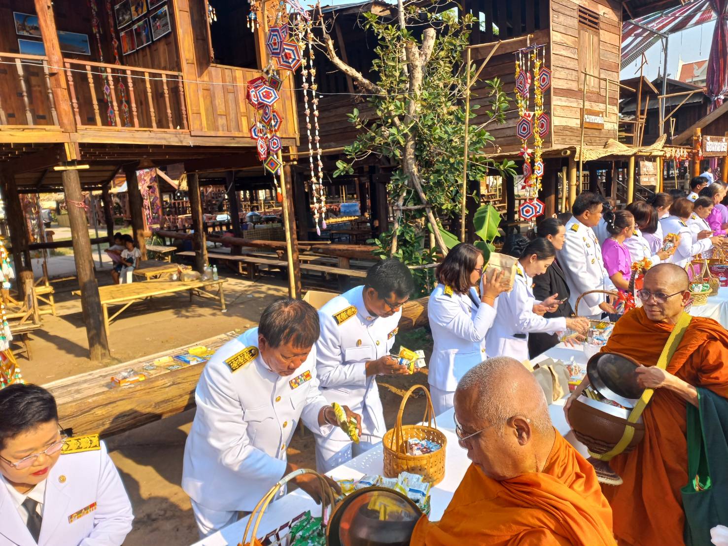เวลา 08.00 น. ร่วมพิธีทำบุญตักบาตรถวายพระราชกุศล ณ บริเวณเฮือนโบราณ หน้าศาลากลางจังหวัดขอนแก่น
