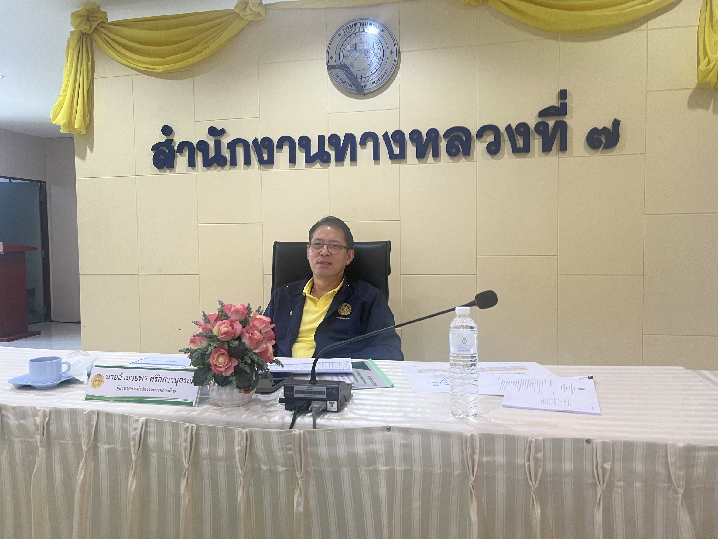 นายอำนวยพร ศรีอิสรานุสรณ์ ผู้อำนวยการสำนักงานทางหลวงที่ 7 พร้อมด้วยรองผู้อำนวยการสำนักงานทางหลวงที่ 7 ตำแหน่งที่ 1 และ 2 ,