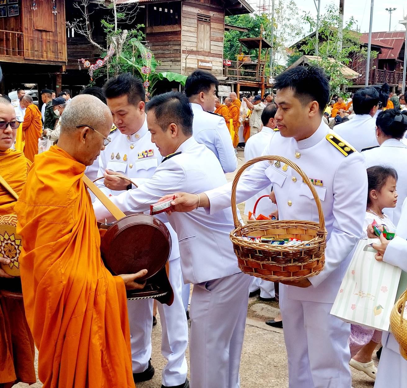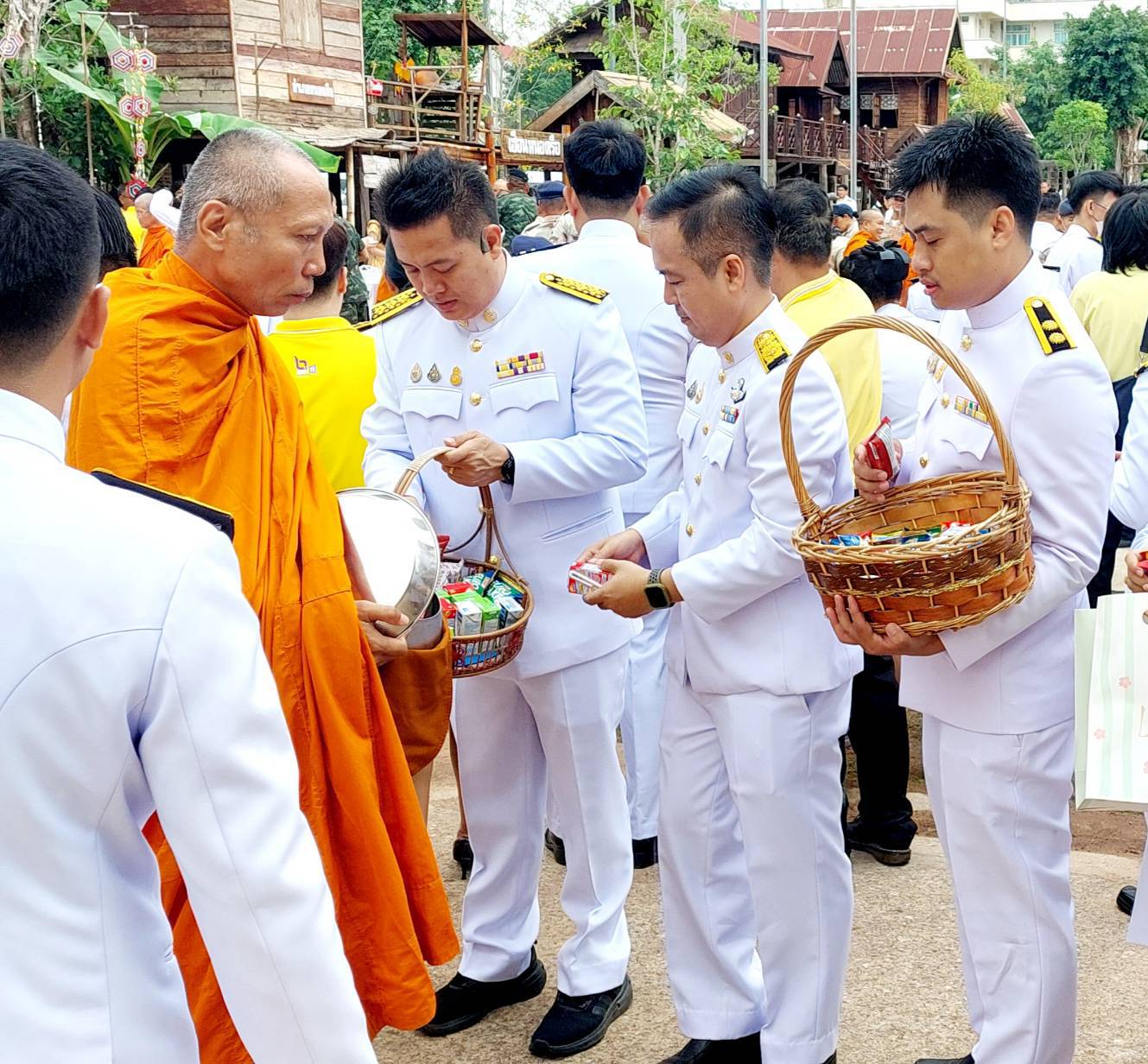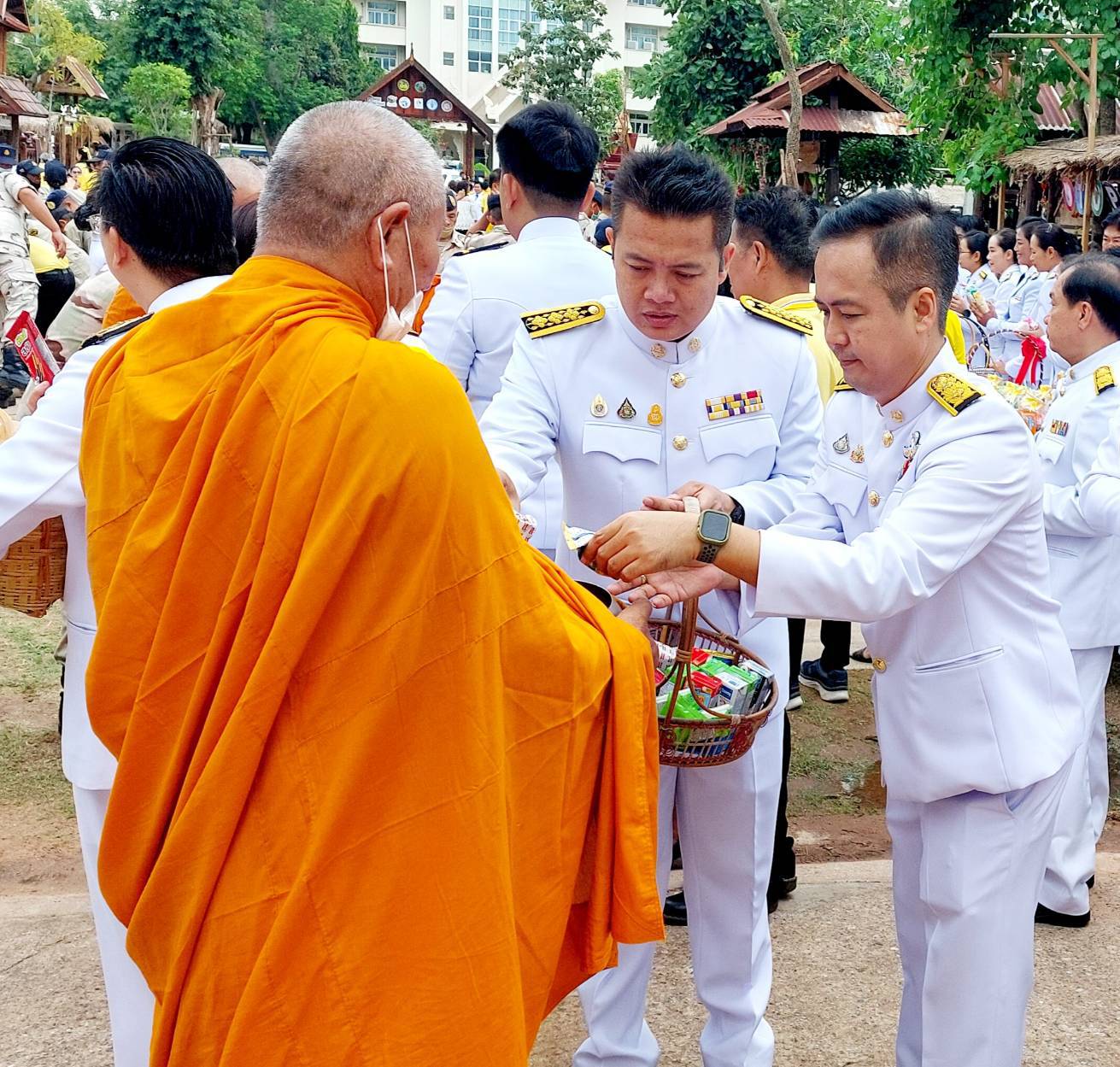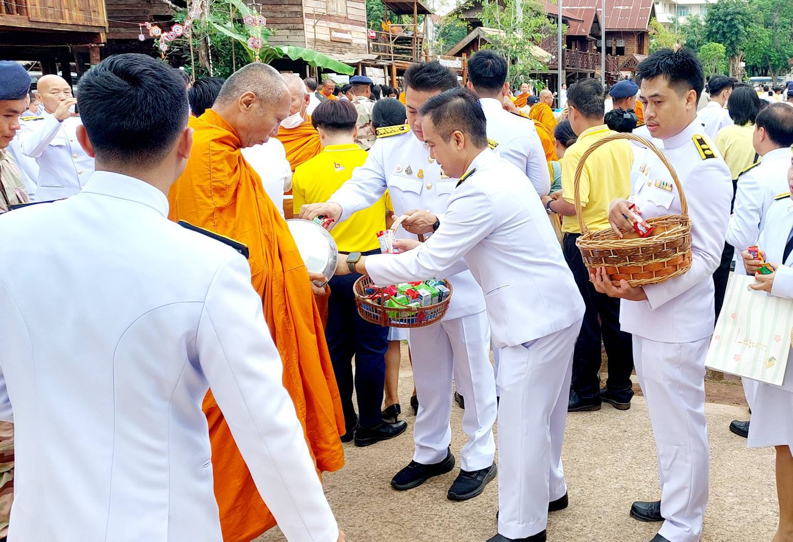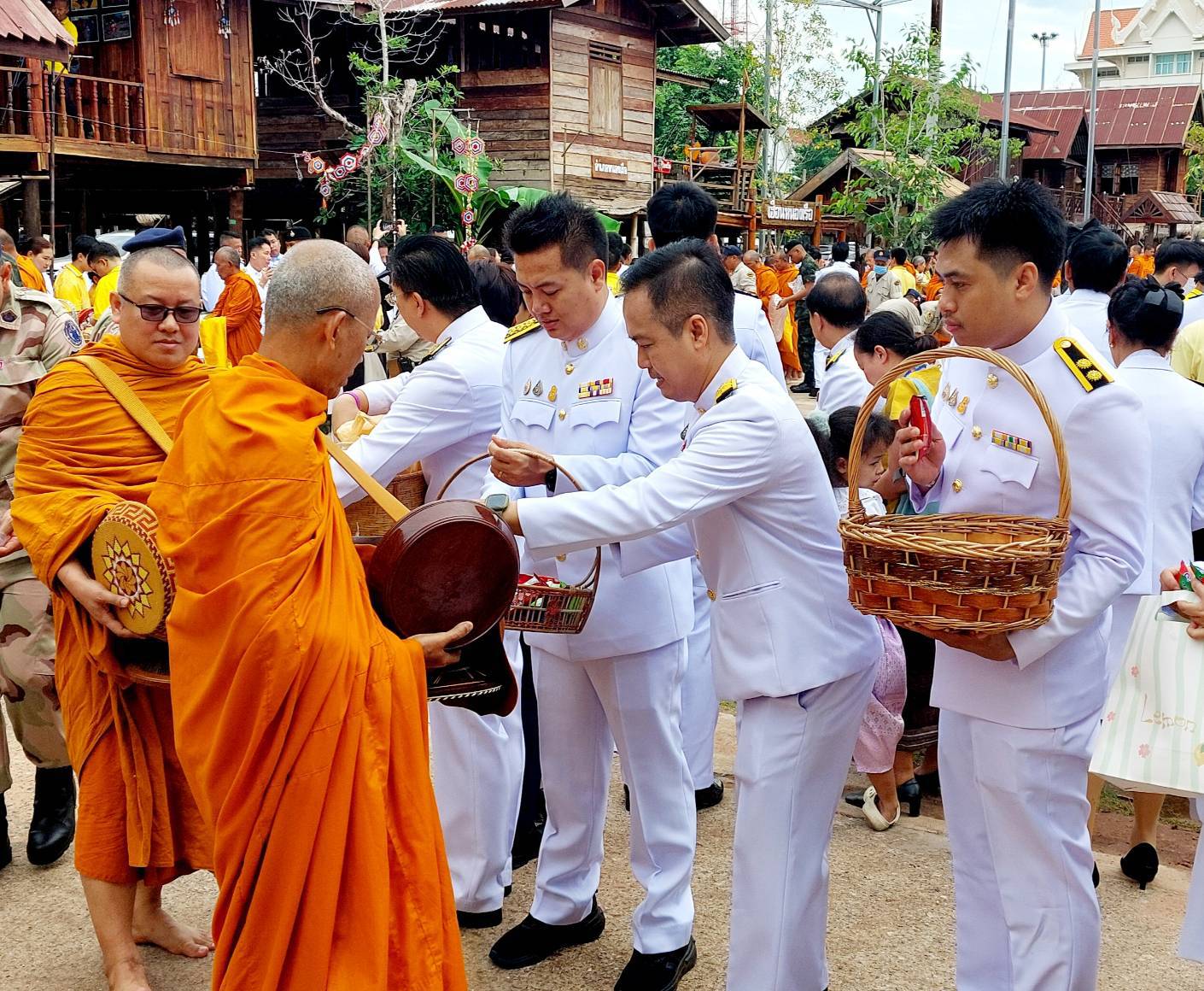 เวลา 08.35 น. ร่วมพิธีทำบุญตักบาตรถวายพระราชกุศล