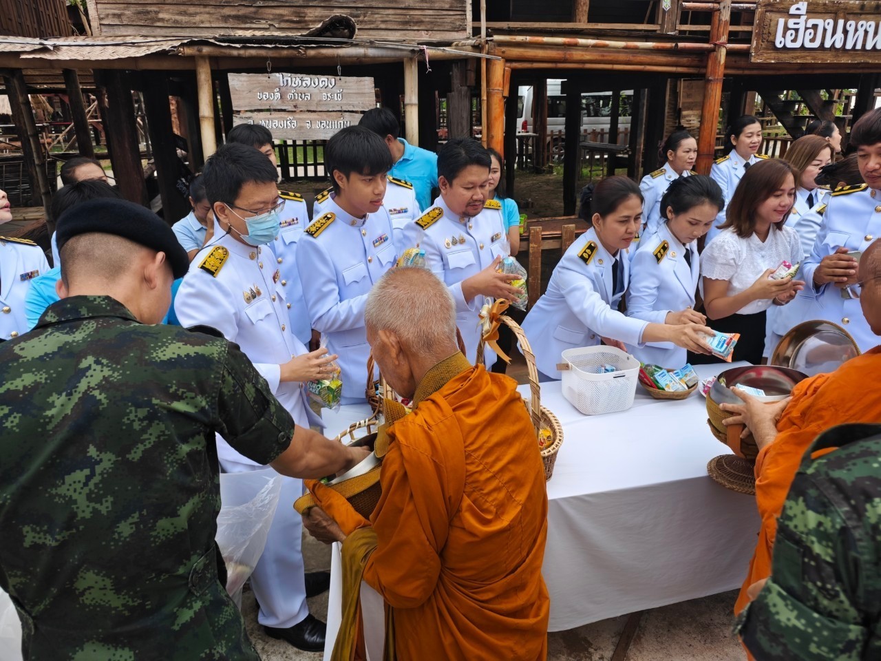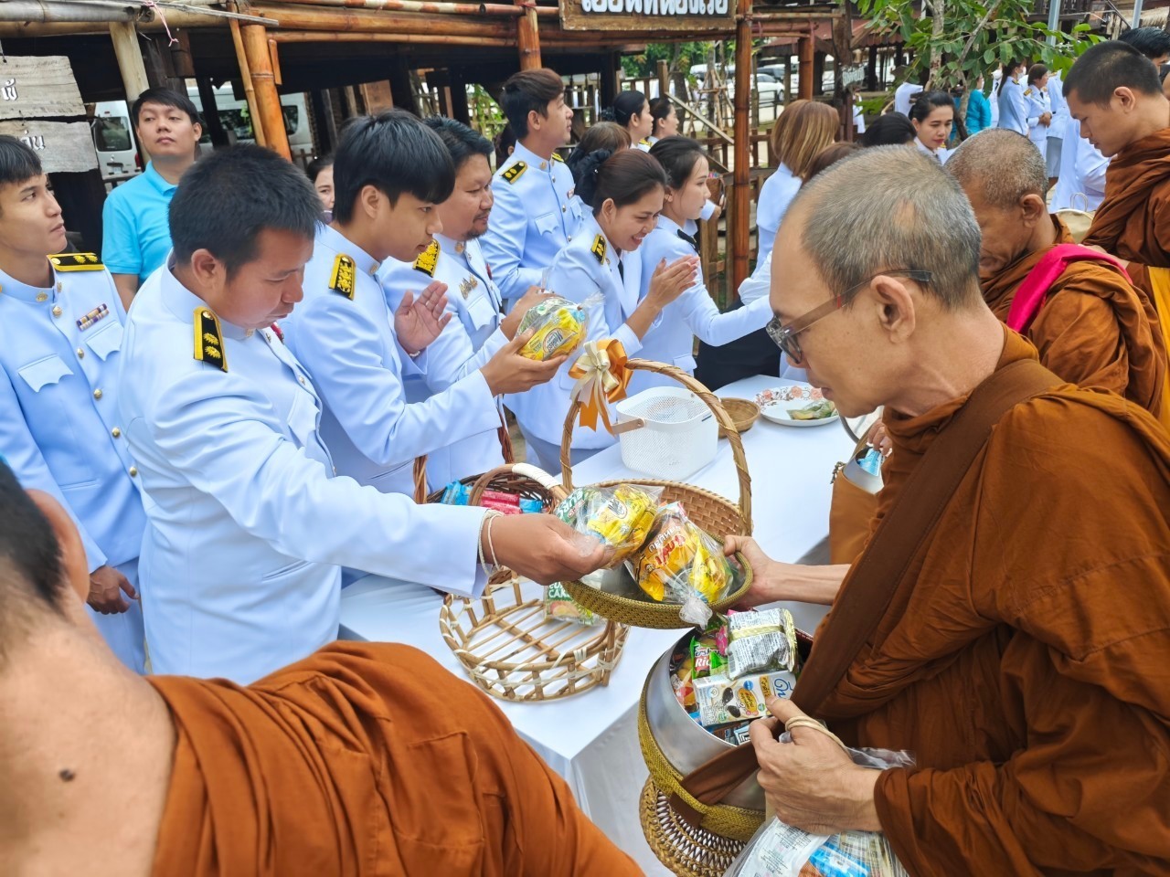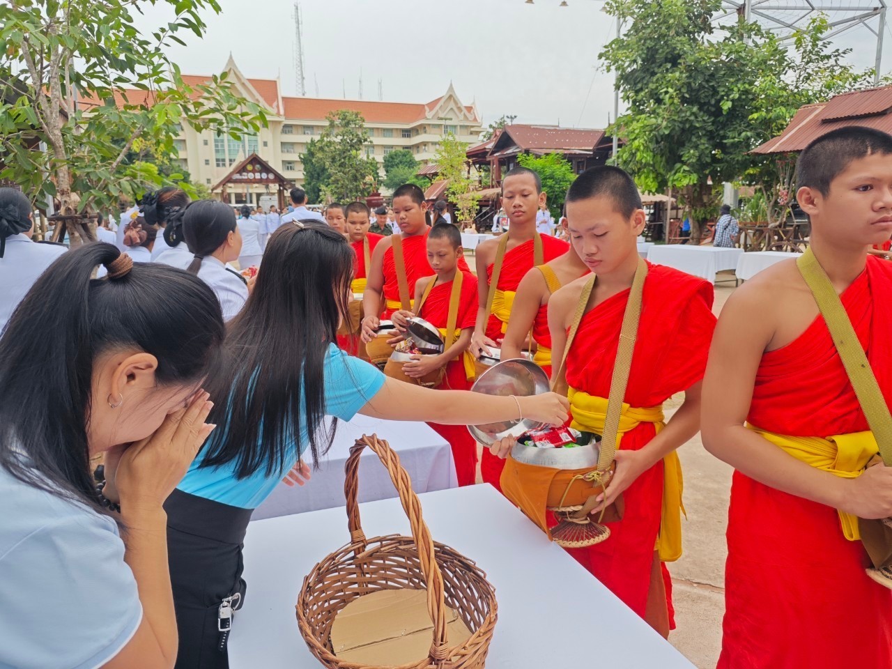เวลา ๐๗.๐๐ น. ร่วมทำบุญตักบาตรถวายพระราชกุศล