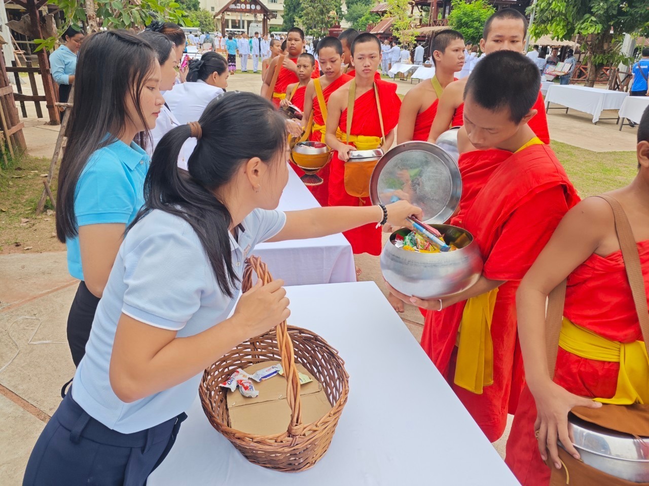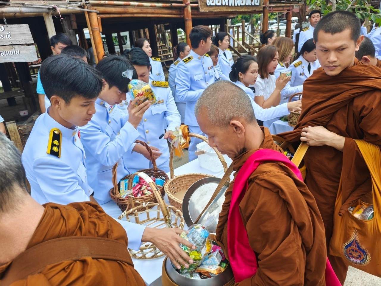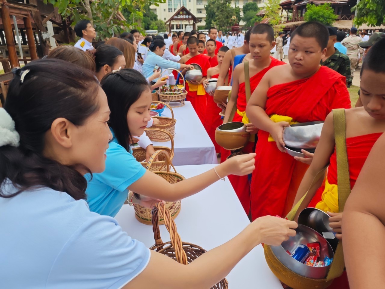 เวลา ๐๗.๐๐ น. ร่วมทำบุญตักบาตรถวายพระราชกุศล