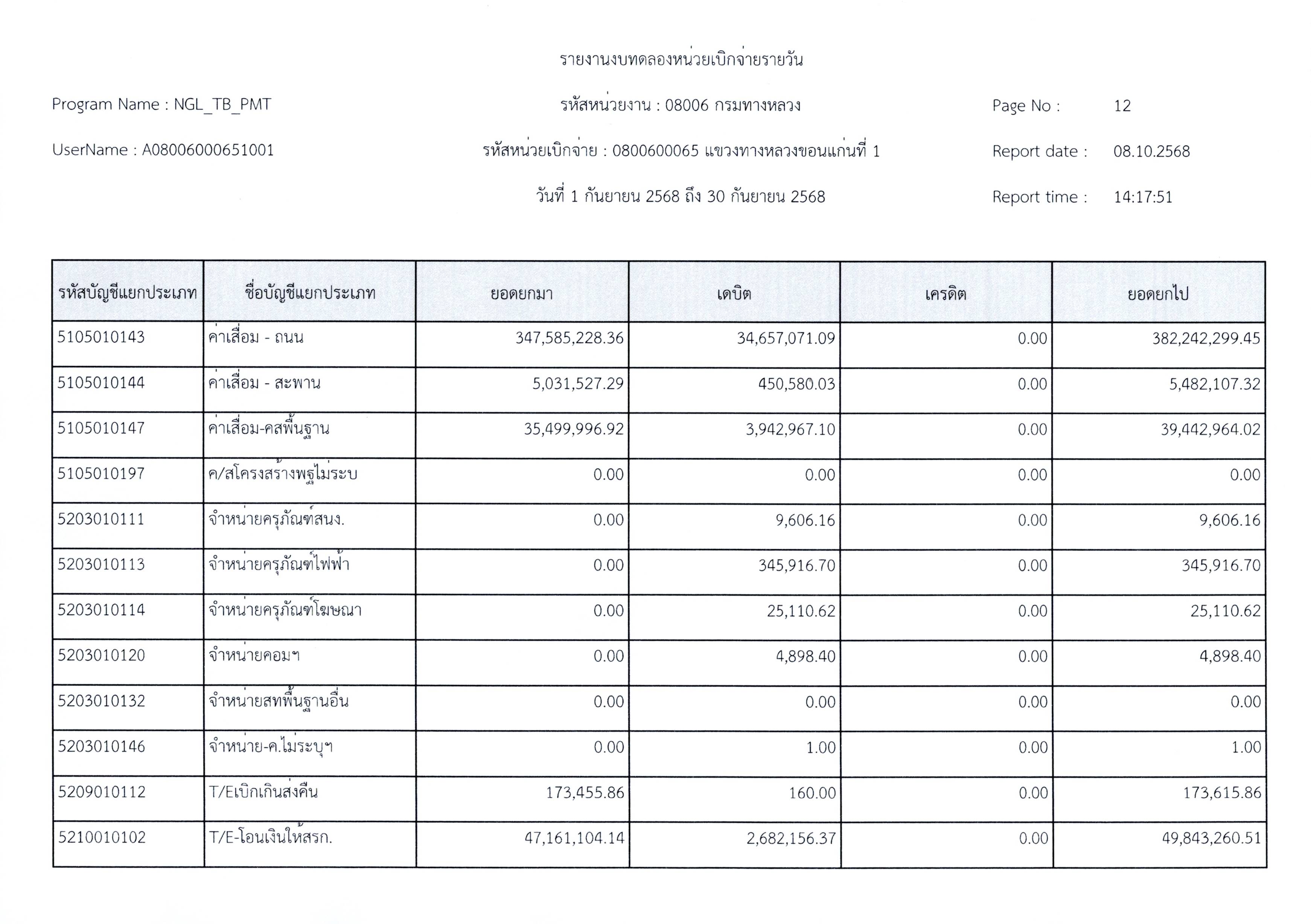งบทดลองประจำเดือนกันยายน 2568