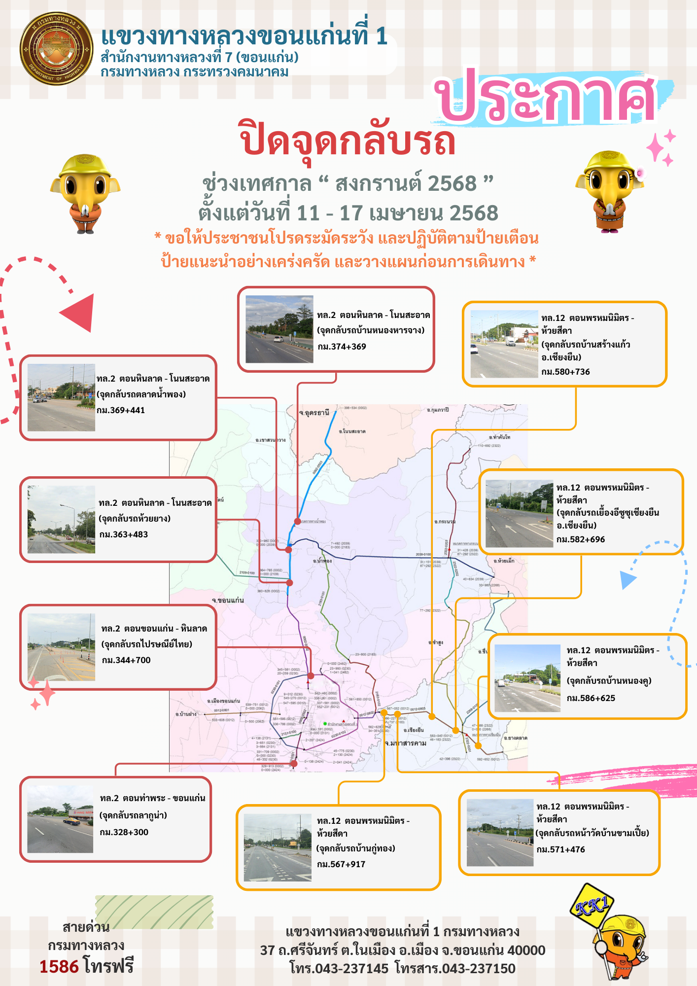 ประชาสัมพันธ์ปิดจุดกลับรถช่วง "เทศกาลสงกรานต์ 2568" ตั้งแต่วันที่ 11 - 17 เมษายน 2568