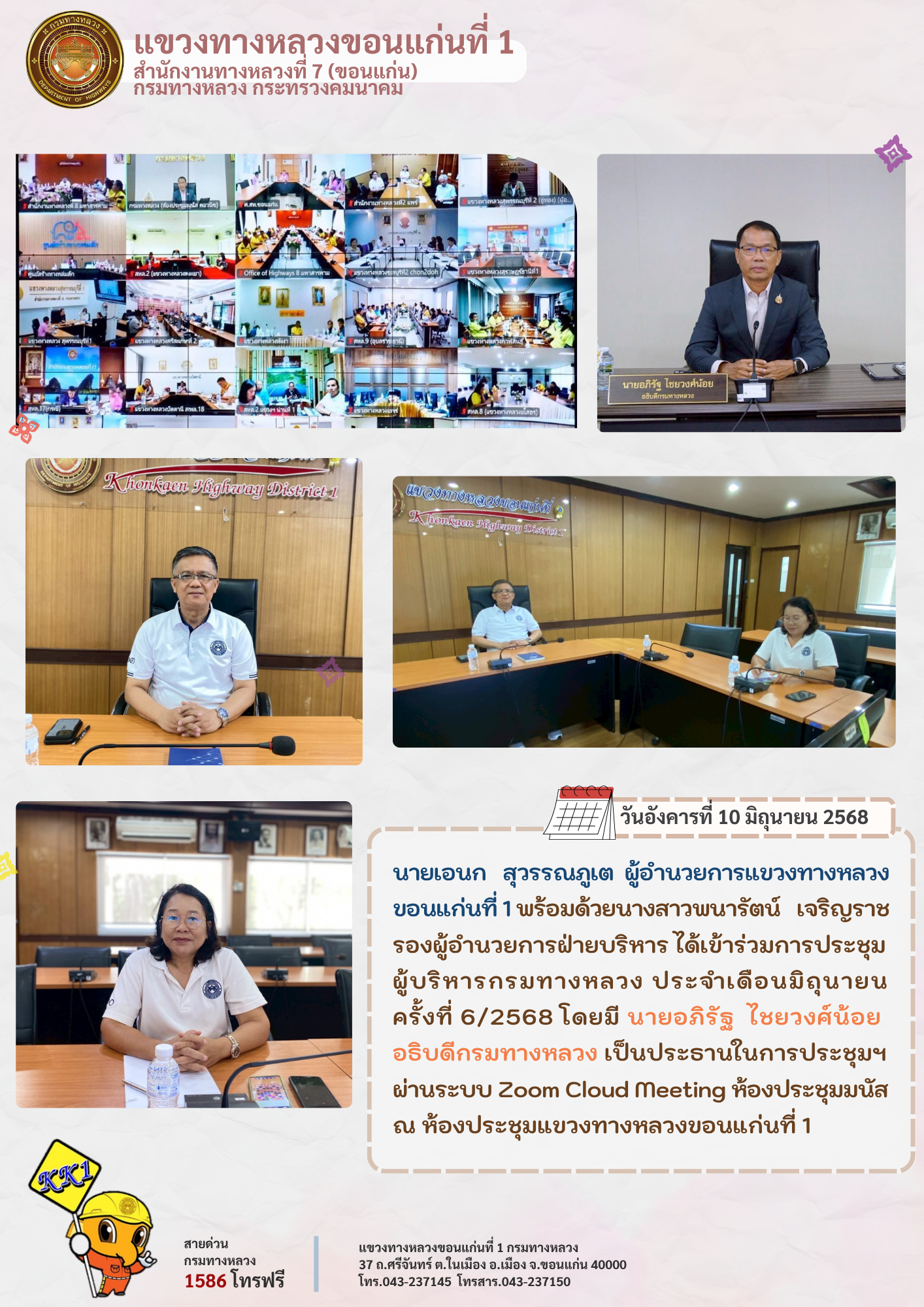 การประชุมผู้บริหารกรมทางหลวง ประจำเดือนมิถุนายน ครั้งที่ 6/2568