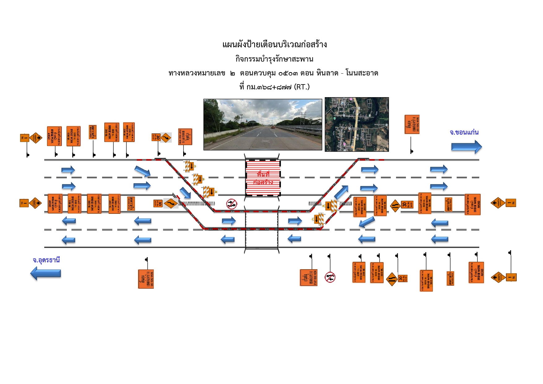 ประชาสัมพันธ์เบี่ยงการจราจรเพื่อทำการก่อสร้าง กิจกรรมบำรุงรักษาสะพาน งานบำรุงรักษาสะพาน ทางหลวงหมายเลข 2 ตอนควบคุม 0503 ตอน หินลาด - โนนสะอาด ที่ กม.368+877 (RT.)