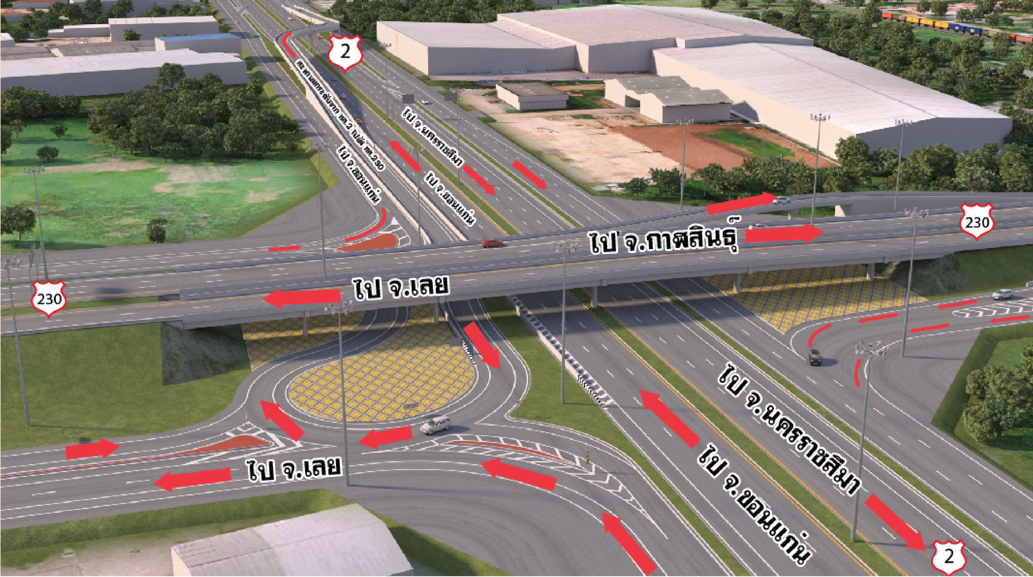 นายสราวุธ ทรงศิวิไล อธิบดีกรมทางหลวง เปิดเผยว่า กรมทางหลวงดำเนินการโครงการพัฒนาทางหลวงสำหรับการแก้ไขปัญหาการจราจร รองรับการเดินทางของประชาชนในพื้นที่จังหวัดขอนแก่นและใกล้เคียงให้มีความสะดวกและความปลอดภัย จึงได้ดำเนินการโครงการก่อสร้างทางแยกต่างระดับจุดตัดทางหลวงหมายเลข 2 ตัดทางหลวงหมายเลข 230 (แยกเมืองเก่า) พื้นที่จังหวัดขอนแก่น เนื่องจากทางแยกจุดตัดทางหลวงหมายเลข 2 กับทางหลวงหมายเลข 230 (ด้านใต้) เป็นทางแยกที่มีปริมาณการจราจรหนาแน่น และเกิดอุบัติเหตุบ่อยครั้ง ประกอบกับพื้นที่ดังกล่าวเป็นแนวเส้นทางที่ตั้งชุมชนหนาแน่น เดิมมีโครงสะพานข้ามแยกบนทางหลวงหมายเลข 230 ตัดข้ามทางหลวงหมายเลข 2 แต่สะพานแห่งนี้ยังไม่สามารถรองรับการจราจรได้ทุกทิศทาง ดังนั้นเพื่อแก้ไขปัญหาการจราจรอย่างยั่งยืน กรมทางหลวงจึงดำเนินการโครงการก่อสร้างทางแยกต่างระดับจุดตัดทางหลวงหมายเลข 2 ตัดทางหลวงหมายเลข 230 (แยกเมืองเก่า) จังหวัดขอนแก่น โดยสำนักสำรวจและออกแบบ ร่วมกับสำนักงานทางหลวงที่ 7 ขอนแก่น และบริษัทวิศวกรที่ปรึกษา ได้ร่วมกันดำเนินการสำรวจพื้นที่และออกแบบเส้นทาง พร้อมทั้งเปิดเวทีรับความฟังความคิดเห็นของประชาชนและผู้มีส่วนได้ส่วนเสียเพื่อรับทราบความประสงค์ในทุกมิติ ซึ่งสำนักสำรวจและออกแบบได้กำหนดเส้นทางการจราจร โดยมีรูปแบบ ดังนี้