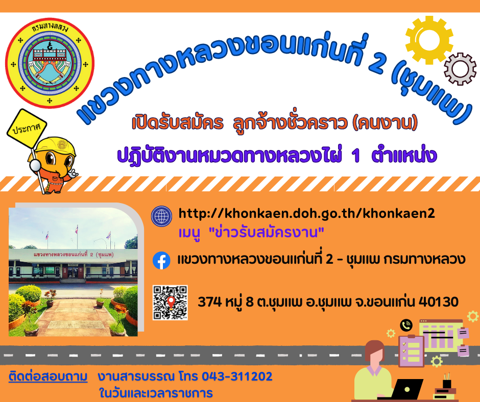 ที่หมวดทางหลวงหนองไผ่ แขวงทางหลวงขอนแก่นที่ ๒ (ชุมแพ) จำนวน ๑ ตำแหน่ง โดยมีรายละเอียดตามเอกสารแนบ