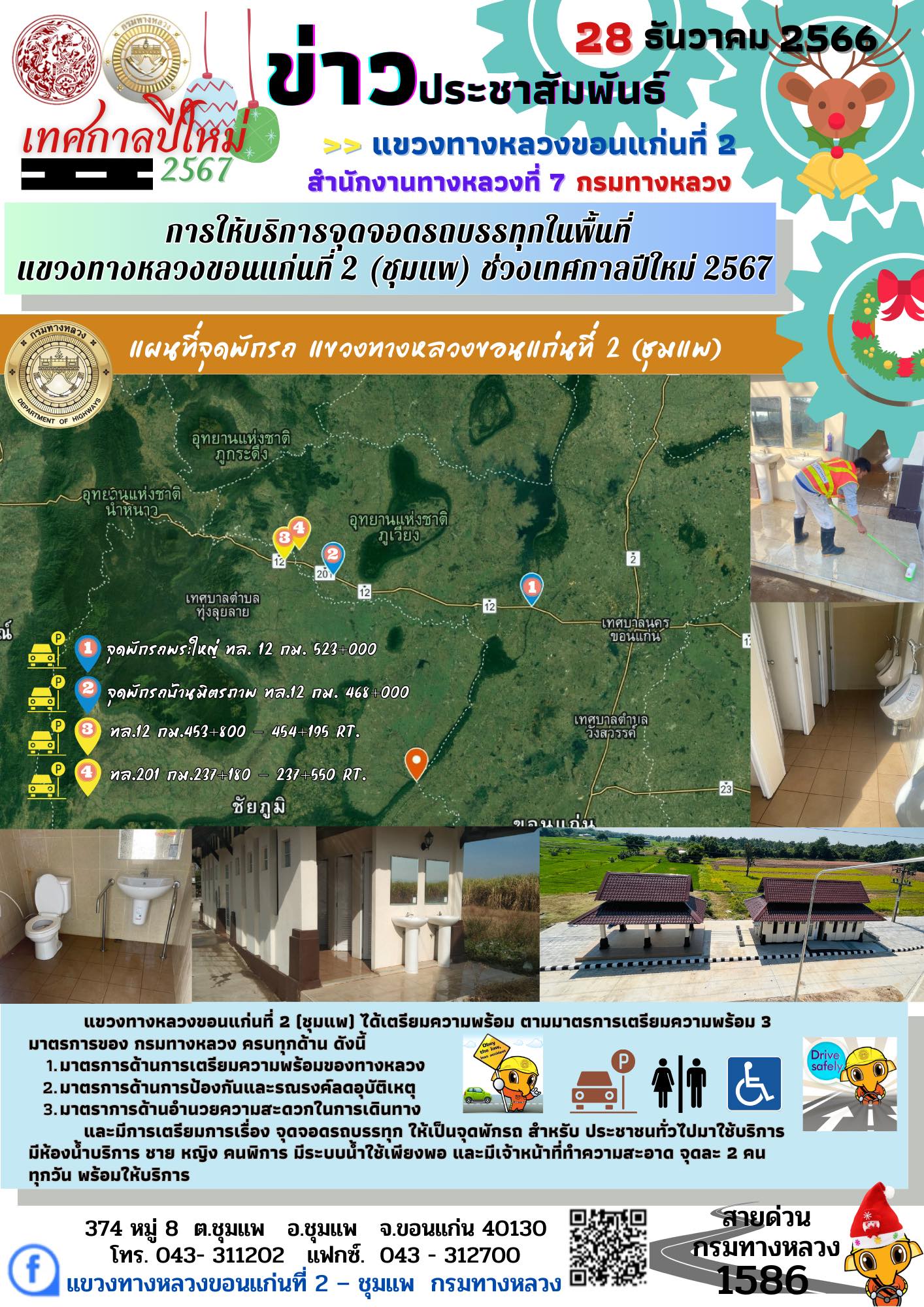 แขวงทางหลวงขอนแก่นที่ 2 (ชุมแพ) ได้เตรียมความพร้อมวันเทศกาลปีใหม่ 2567 ตามมาตรการเตรียมความพร้อม 3 มาตรการของ กรมทางหลวง ครบทุกด้าน ดังนี้
