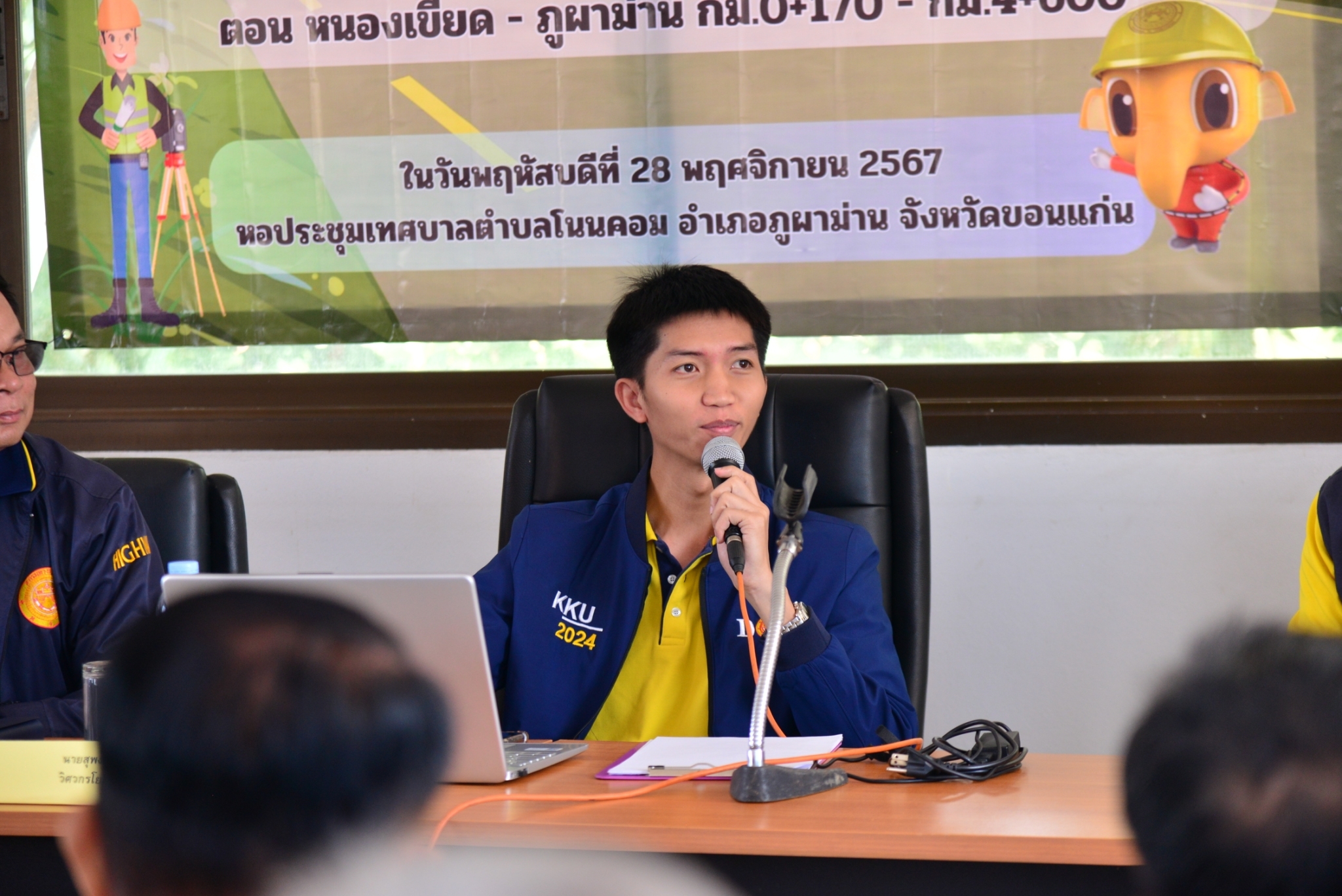 วันที่ 28  พฤศจิกายน 2567 นายประสพชัย ปรางค์ทอง ผู้อำนวยการแขวงทางหลวงขอนแก่นที่ 2 (ชุมแพ) และเจ้าหน้าที่แขวงทางหลวงขอนแก่นที่ 2 (ชุมแพ) ได้ประชุมดำเนินโครงการมีส่วนร่วมของประชาชน ประจำปีงบประมาณ 2568 ร่วมกับหน่วยงานที่เกี่ยวข้องทั้งภาครัฐ ผู้นำท้องถิ่น ผู้นำชุมชน และประชาชนในพื้นที่โครงการ “โครงการก่อสร้างโครงข่ายทางหลวงแผ่นดิน กิจกรรมก่อสร้างทางหลวงพัฒนาพื้นที่ระดับภาค งานก่อสร้างทางหลวงพัฒนาพื้นที่ระดับภาค ทางหลวงหมายเลข 2361 ตอนหนองเขียด - ภูผาม่าน กม.0+170 - กม.4+600“ นายวินัย สุทธิประภา รองผู้อำนวยการแขวงทางหลวงฝ่ายปฏิบัติการ และนายสุพงศ์ วิชัยพิบูลย์ วิศวกรโยธาปฏิบัติการ เป็นวิทยากรนำเสนอรายละเอียดรูปแบบของโครงการ ตลอดจนเปิดโอกาสให้ประชาชนได้ร่วมแสดงความคิดเห็น ข้อเสนอแนะต่างๆ อันจะเป็นประโยชน์ต่อการดำเนินโครงการ ซึ่งในที่ประชุมมีมติเห็นด้วยกับโครงการก่อสร้างดังกล่าว