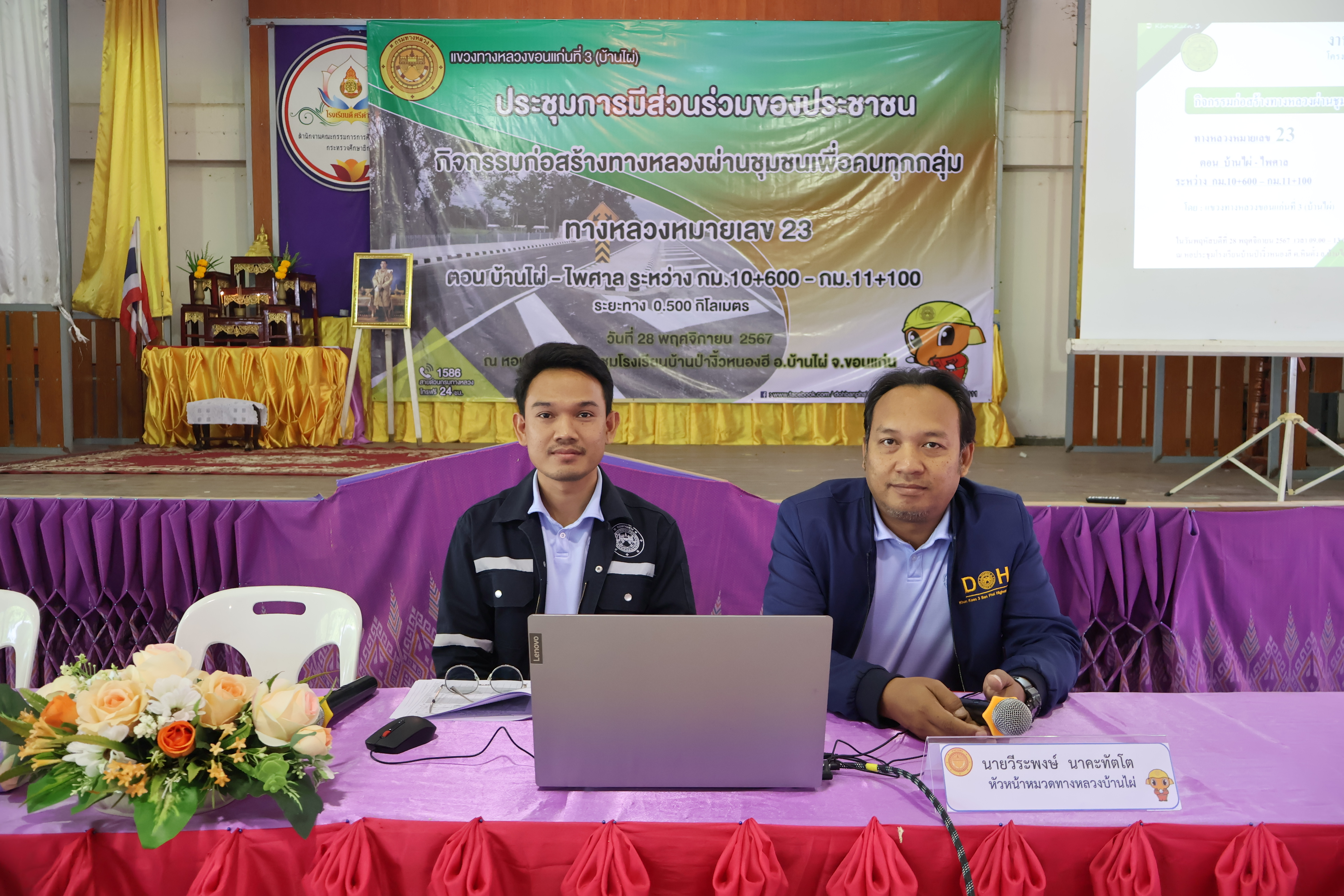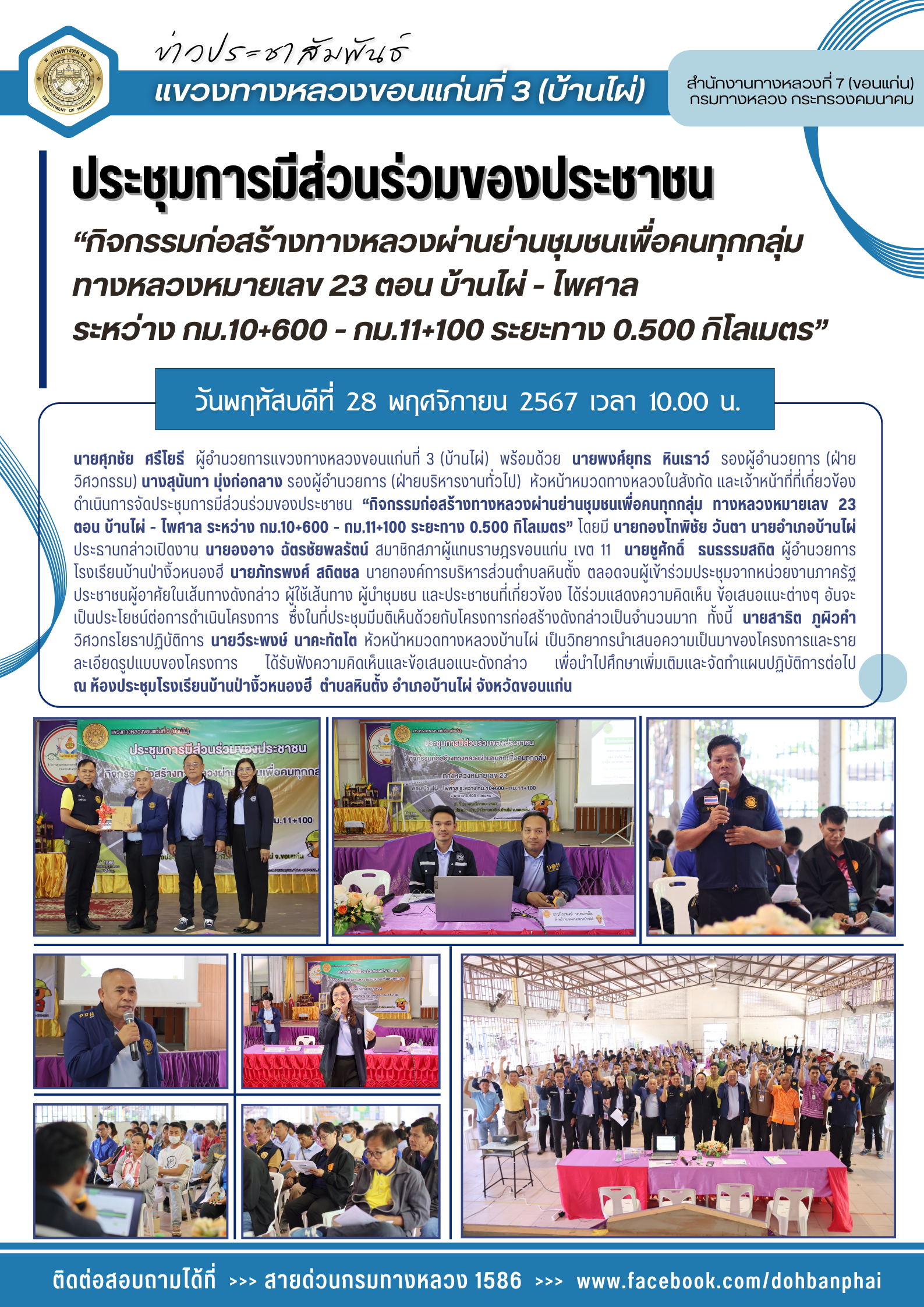 #ประชุมการส่วนร่วมของประชาชน “กิจกรรมก่อสร้างทางหลวงผ่านชุมชนเพื่อคนทุกกลุ่ม ทางหลวงหมายเลข 23 ตอน บ้านไผ่ - ไพศาล ระหว่าง กม.10+600 - กม.11+100 ระยะทาง 0.500 กิโลเมตร”