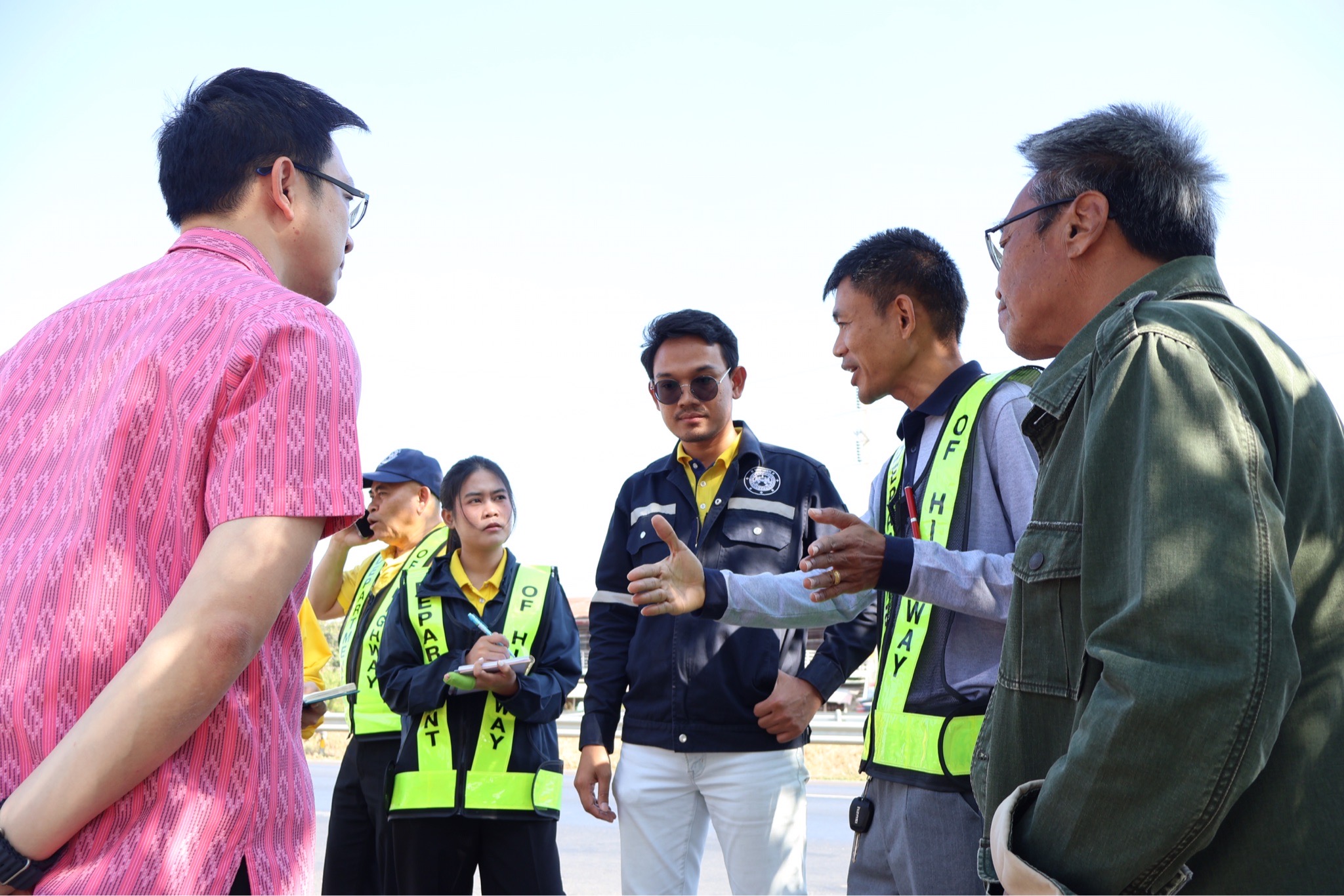 #นายศุภชัย ศรีึโยธี ผู้อำนวยการแขวงทางหลวงขอนแก่นที่ 3 (บ้านไผ่) นายลือชัน วิจารวงษ์ หัวหน้าหมวดทางหลวงบ้านแฮด นายสาธิต ภูผิวคำ วิศวกรโยธาปฎิบัติการ (หัวหน้างานวางแผน) พร้อมเจ้าหน้าที่ที่เกี่ยวข้อง