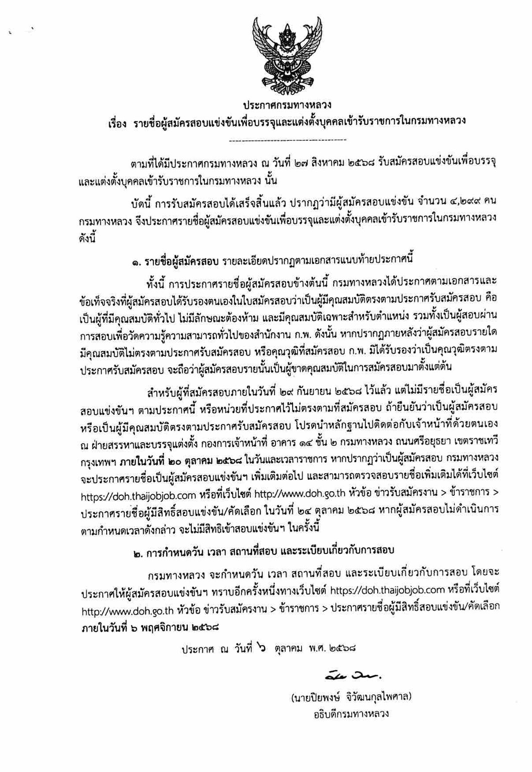 12 09/10/2568 รายชื่อผู้สมัครสอบแข่งขันเพื่อบรรจุและแต่งตั้งบุคคลเข้ารับราชการกรมทางหลวง