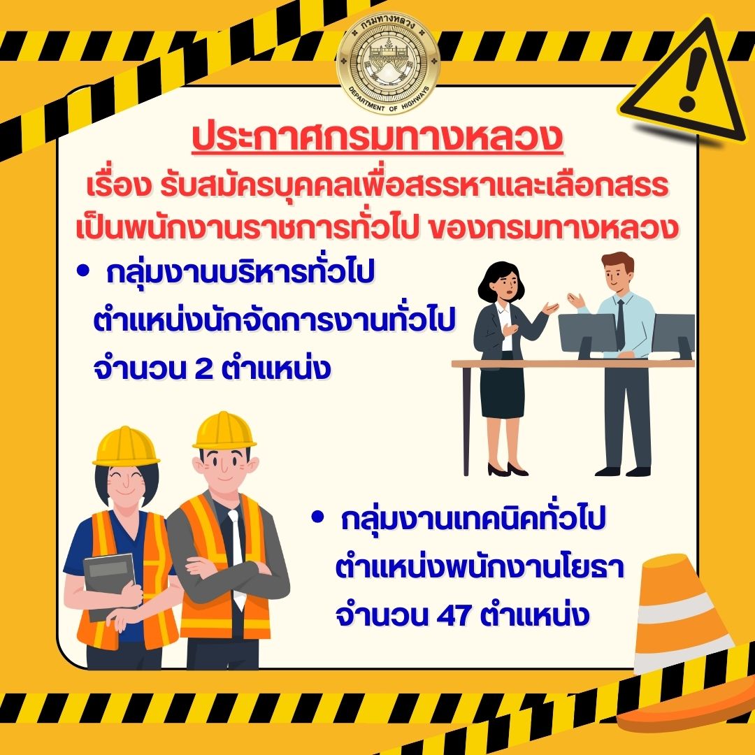 8 15/01/2569 ประกาศกรมทางหลวง เรื่อง รับสมัครบุคคลเพื่อสรรหาและเลือกสรรเป็นพนักงานราชการทั่วไป ของกรมทางหลวง