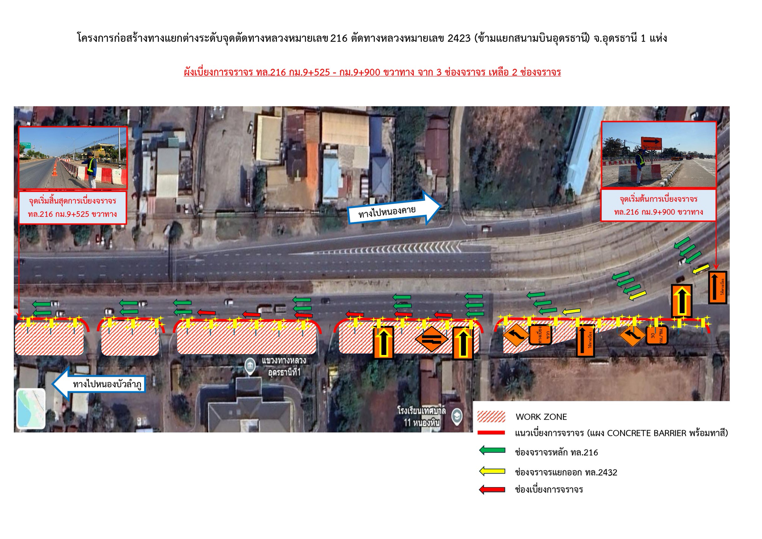 7 12/02/2569 เบี่ยงการจราจร ทางหลวงหมายเลข 216 ตอน ถนนวงแหวนรอบเมืองอุดรธานีด้านทิศตะวันตก กม.9+525 - กม.9+900 ขวาทาง