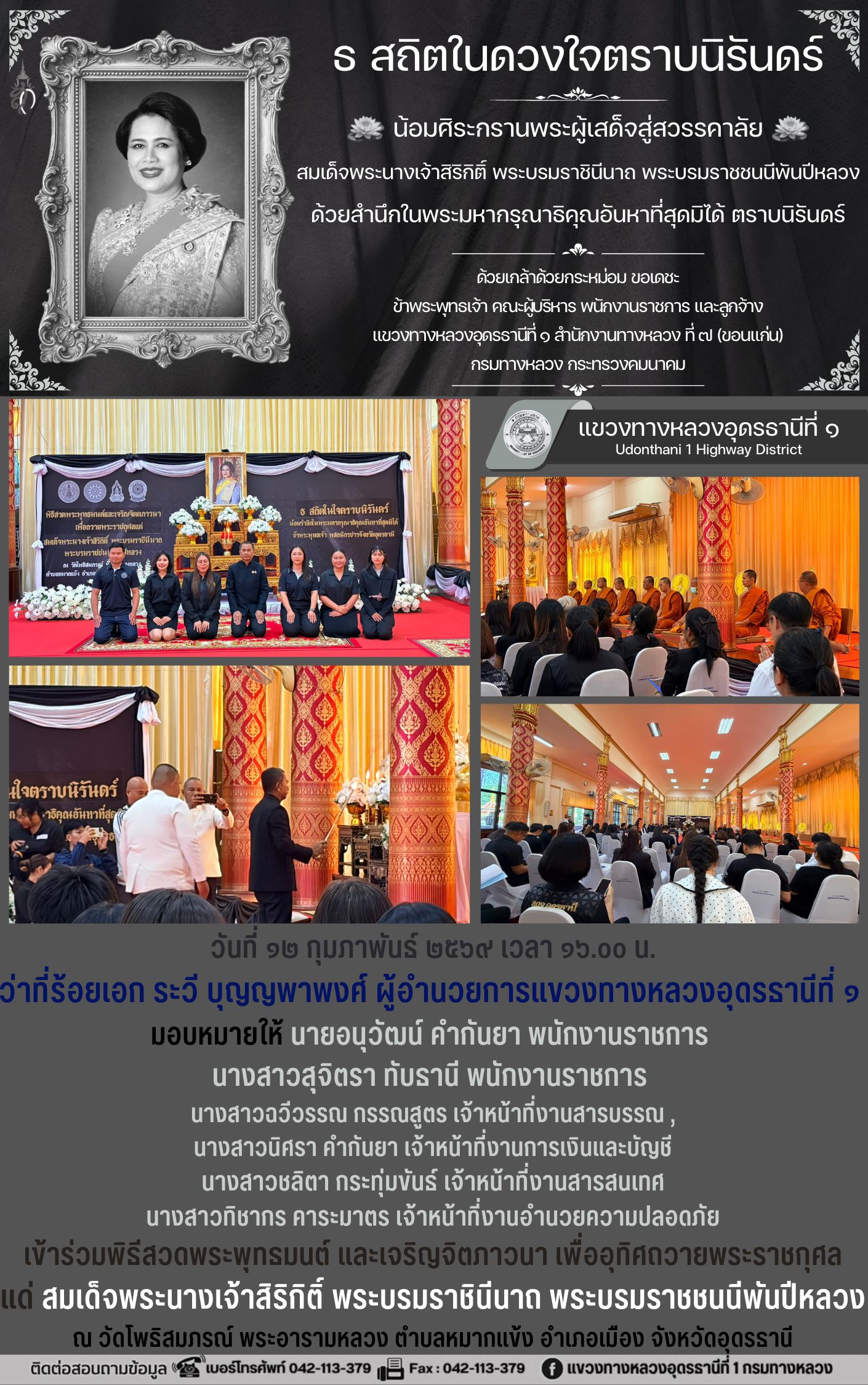 4 16/02/2569 เข้าร่วมพิธีสวดพระพุทธมนต์ และเจริญภาวนา เพื่ออุทิศถวายพระราชกุศลแด่ สมเด็จพระนางเจ้าสิริกิติ์ พระบรมราชินีนาถ พระบรมราชชนนีพันปีหลวง