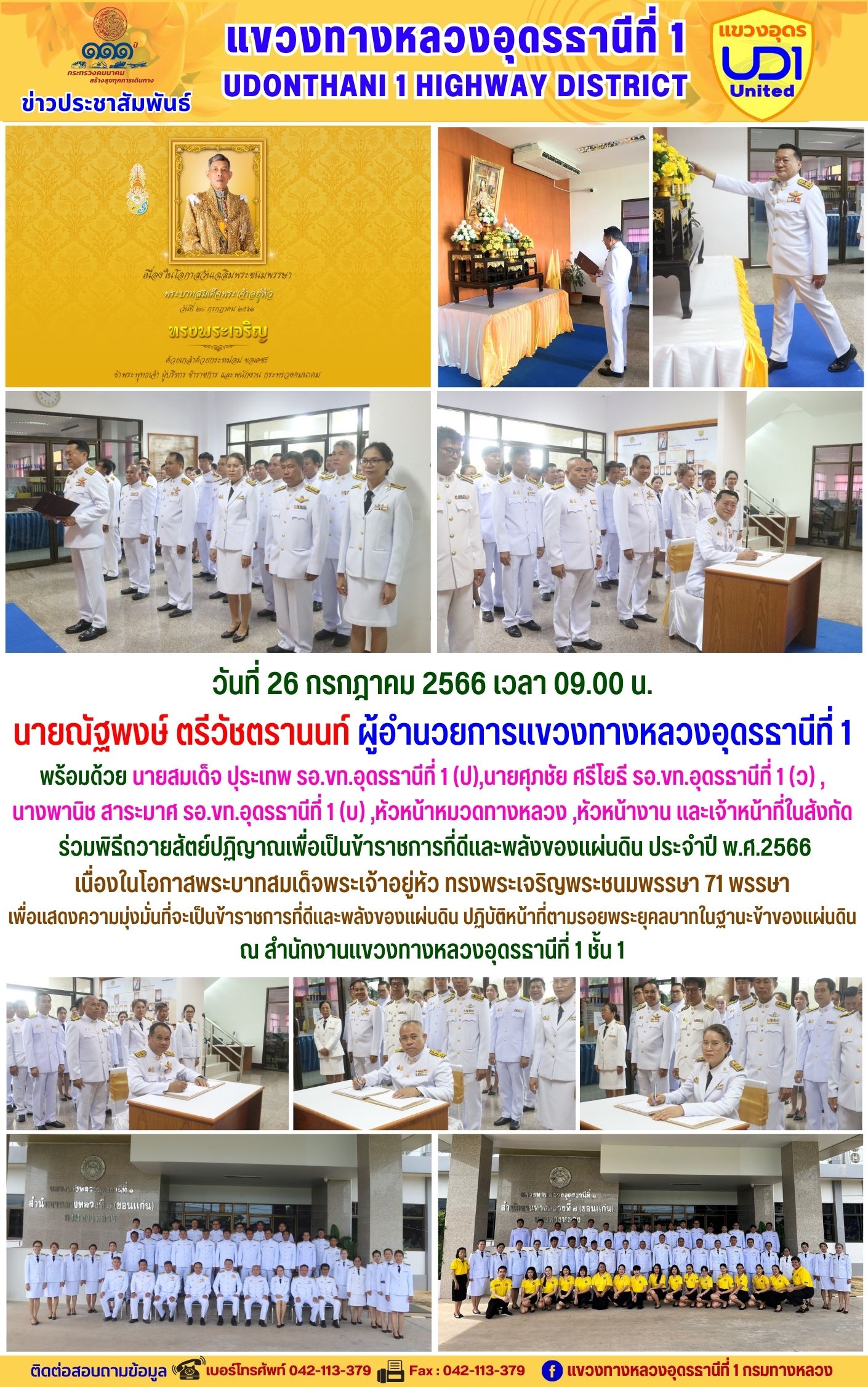 ร่วมพิธีถวายสัตย์ปฏิญาณเพื่อเป็นข้าราชการที่ดีและพลังของแผ่นดิน ประจำปี พ.ศ.2566 เนื่องในโอกาสพระบาทสมเด็จพระเจ้าอยู่หัว ทรงพระเจริญพระชนมพรรษา 71 พรรษา