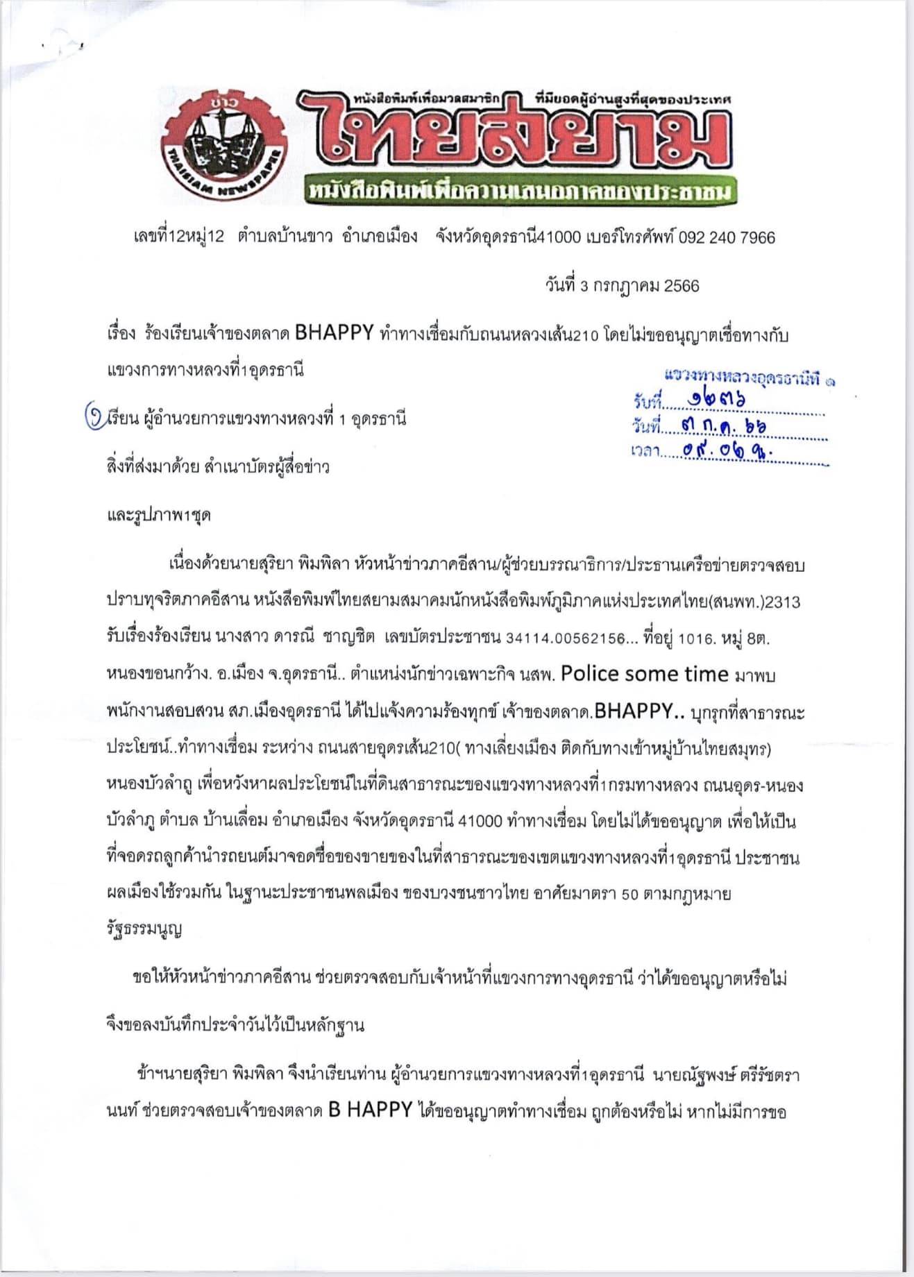 แก้ไขตามที่ได้มีเรื่องร้องเรียน การทำทางเชื่อมเข้าออก ตลาด B HAPPY