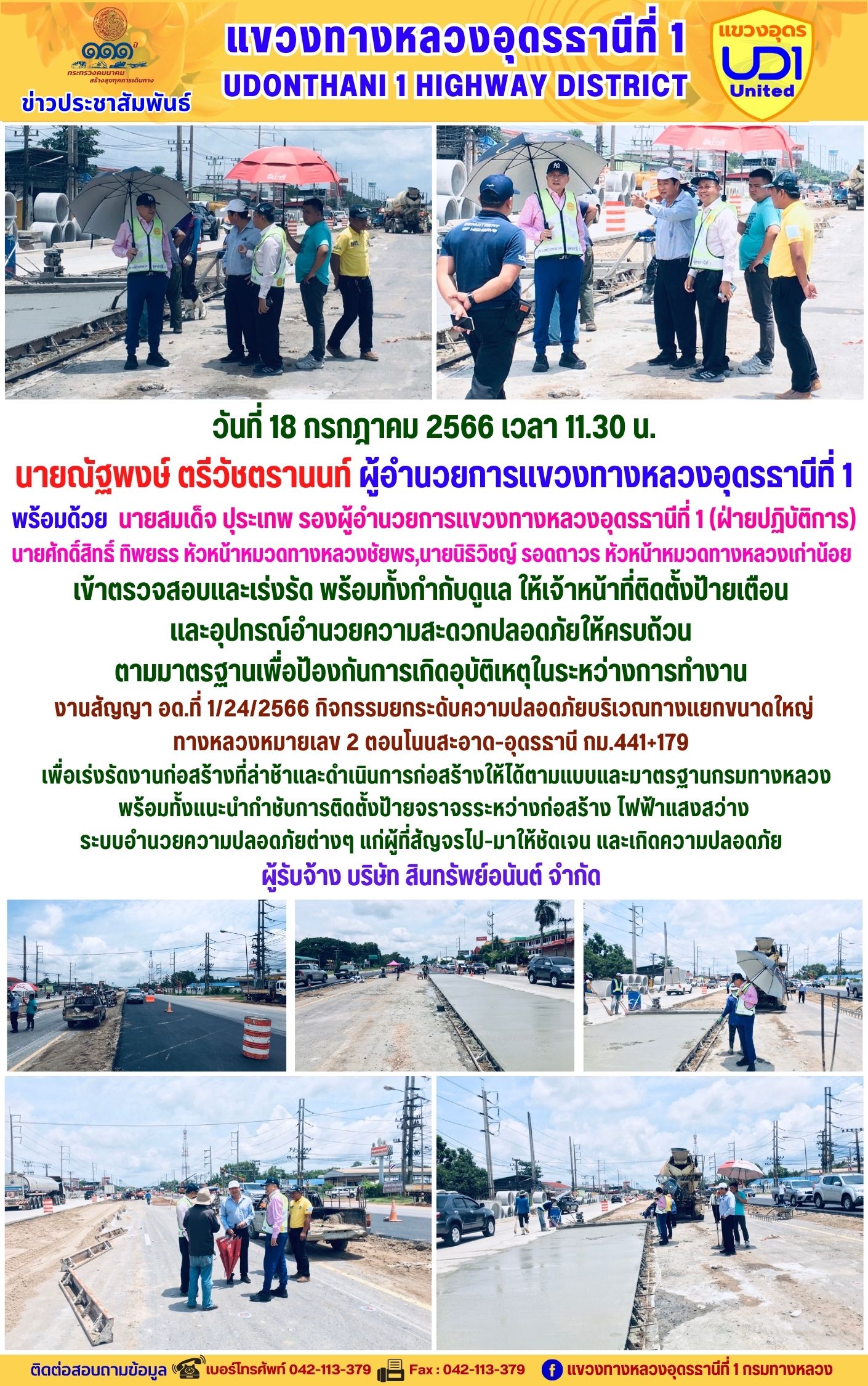 ข่าวประชาสัมพันธ์ แขวงทางหลวงอุดรธานีที่ 1