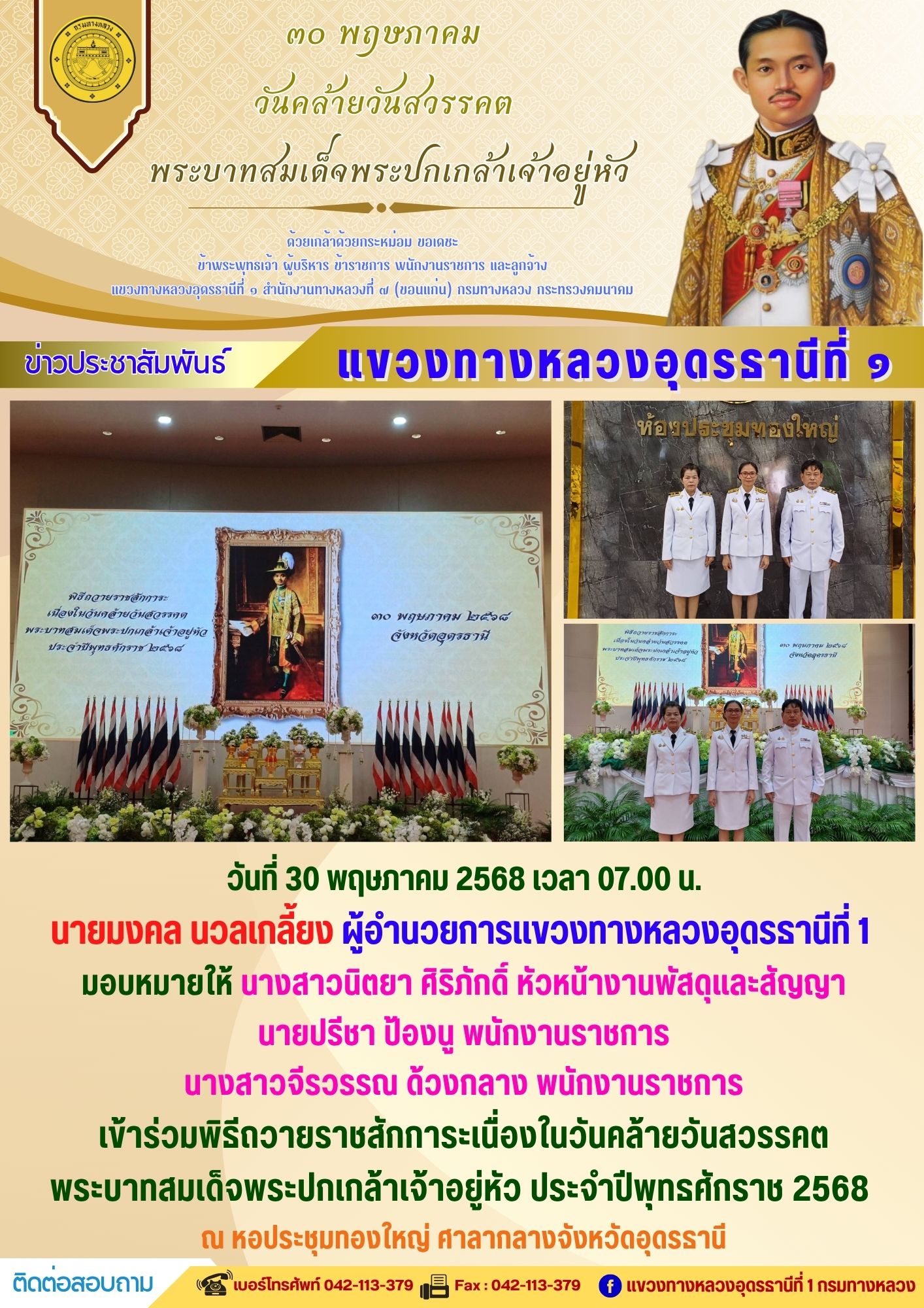 ข่าวประชาสัมพันธ์ แขวงทางหลวงอุดรธานีที่ 1