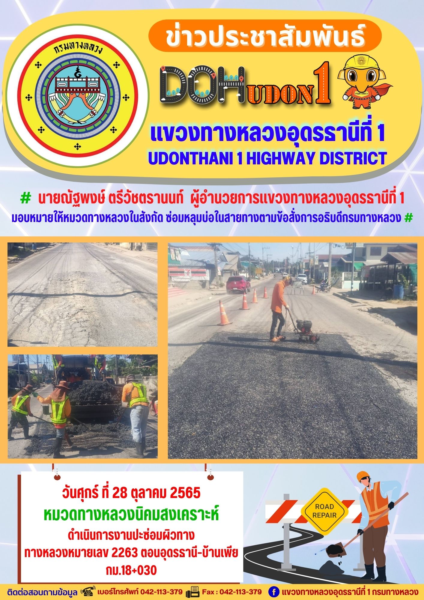 ข่าวประชาสัมพันธ์ แขวงทางหลวงอุดรธานีที่ 1