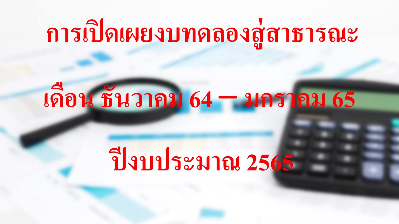 ข่าวประชาสัมพันธ์ : การเปิดเผยงบทดลองสู่สาธารณะ เดือน ธันวานคม 64 - มกราคม 65 ปีงบประมาณ 2565