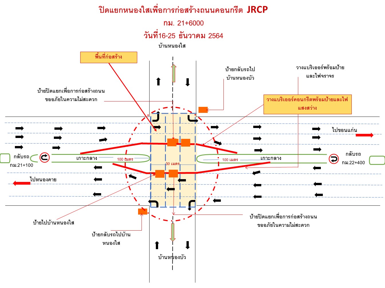 โครงการก่อสร้างทางหลวงหมายเลข 2 สายอุดรธานี – อำเภอสระใคร จะทำการเบี่ยงการจราจรและปิดจุดกลับรถ เพื่อการก่อสร้าง CONCRETE PAVEMENT บนคันทางเดิมรวมทั้งส่วนขยาย