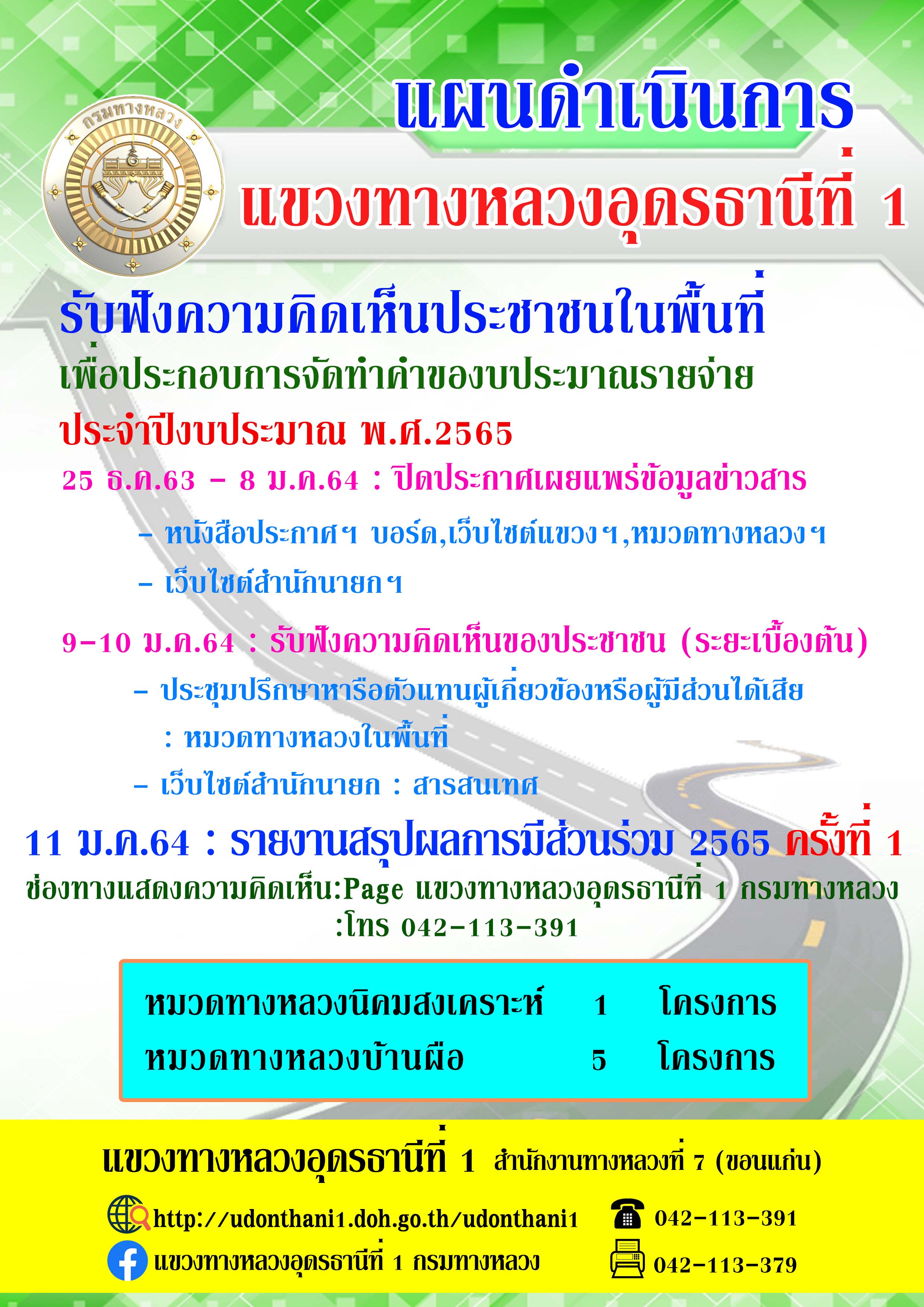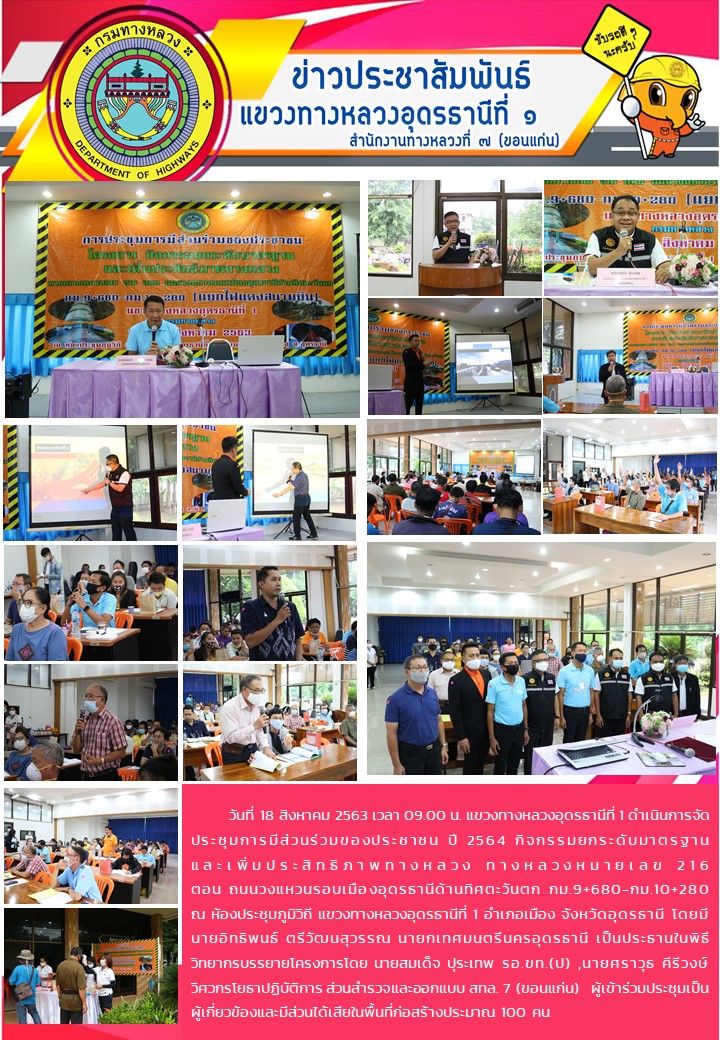 747 18/08/2563 ประชุมการมีส่วนร่วมของประชาชน ปี 2564 กิจกรรมยกระดับมาตรฐาน และเพิ่มประสิทธิภาพทางหลวง ทางหลวงหมายเลข 216 ตอน ถนนวงแหวนรอบเมืองอุดรธานีด้านทิศตะวันตก กม.9+680-กม.10+280