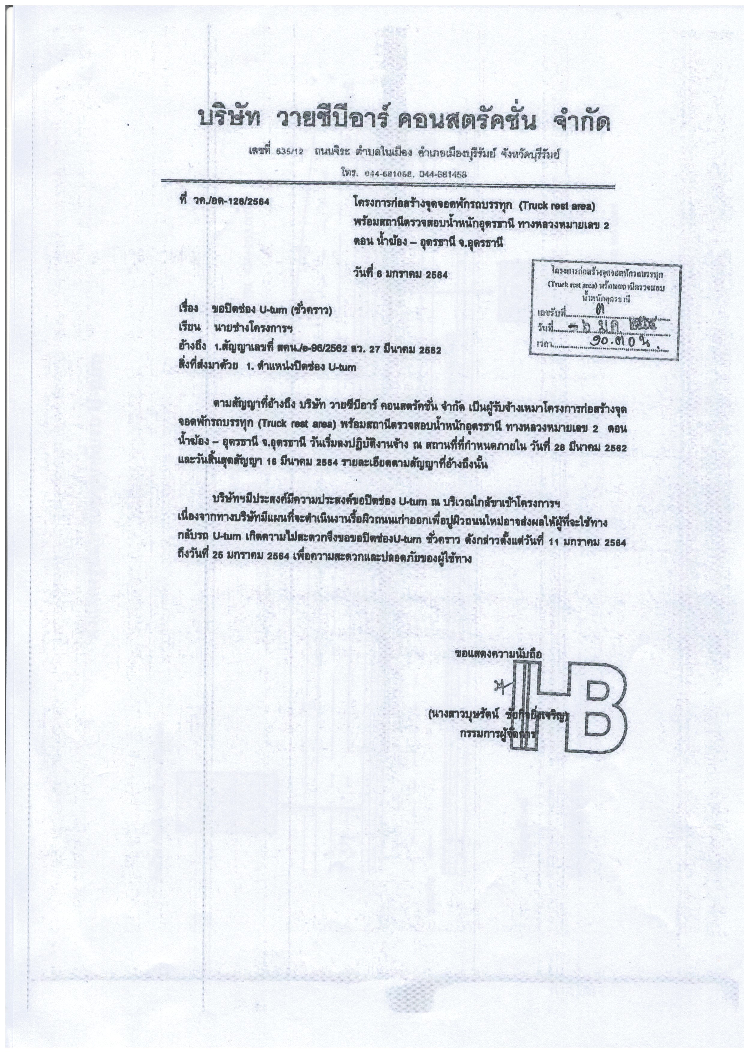 743 18/11/2563 โครงการก่อสร้างจุดจอดพักรถบรรทุก (truck rest area) พร้อมสถานีตรวจสอบน้ำหนักอุดรธานี จ.อุดรธานี ทางหลวงหมายเลข 2 ตอน โนนสะอาด-อุดรธานี ขอปิดช่อง U-turn ชั่วคราว