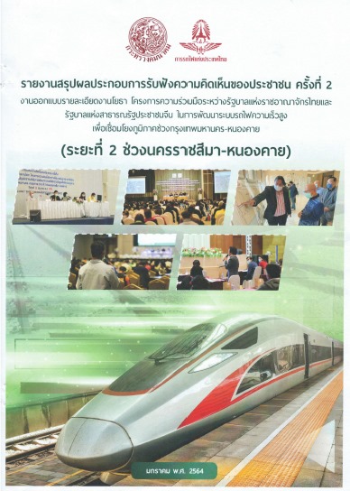 737 08/02/2564 รายงานสรุปผลการรับฟังความคิดเห็นของประชาชน ครั้งที่ 2 งานออกแบบรายละเอียด งานโยธาโครงการความร่วมมือระหว่างรัฐบาลแห่งราชอาณาจักรไทยและรัฐบาลแห่งสาธารณรัฐประชาชนจีน ในพัฒนาระบบไฟความเร็วสูงเพื่อเชื่อมโยงภูมิภาคช่วงกรุงเทฑมหานคร-หนองคาย (ระยะที่ 2 ช่วงนครราชสีมา-หนองคาย)