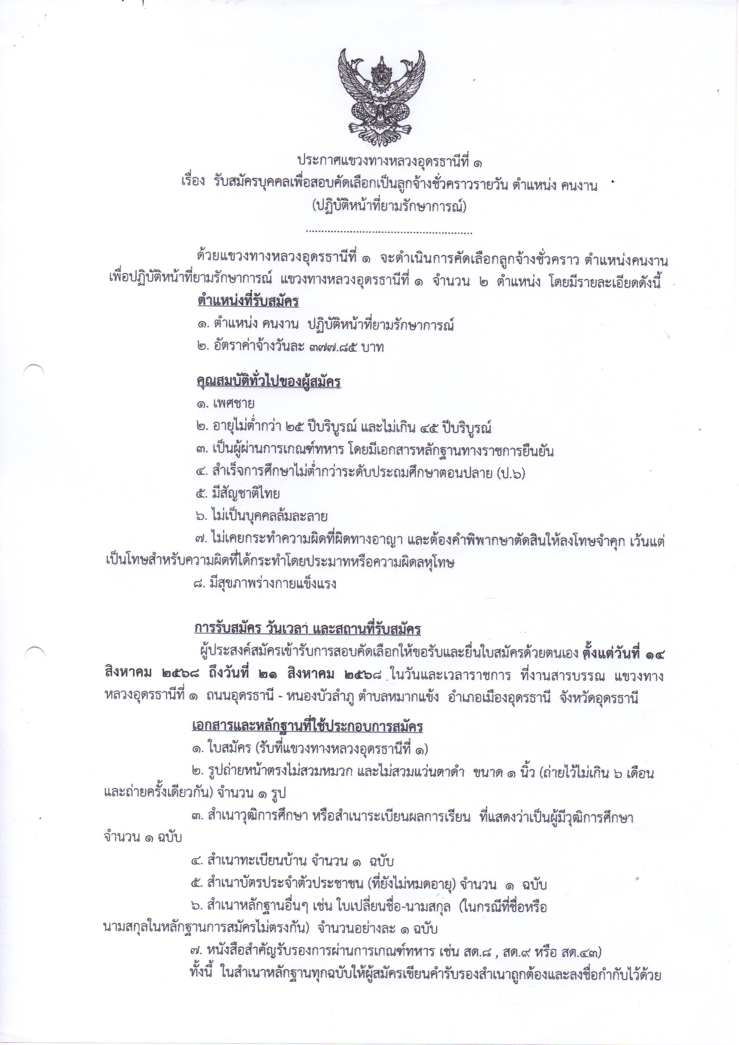 รับสมัครบุคคลเพื่อสอบคัดเลือกเป็นลูกจ้างชั่วคราวรายวัน คำแหน่ง คนงาม (ปฏิบัติหน้าที่ยามรักษาการณ์)
