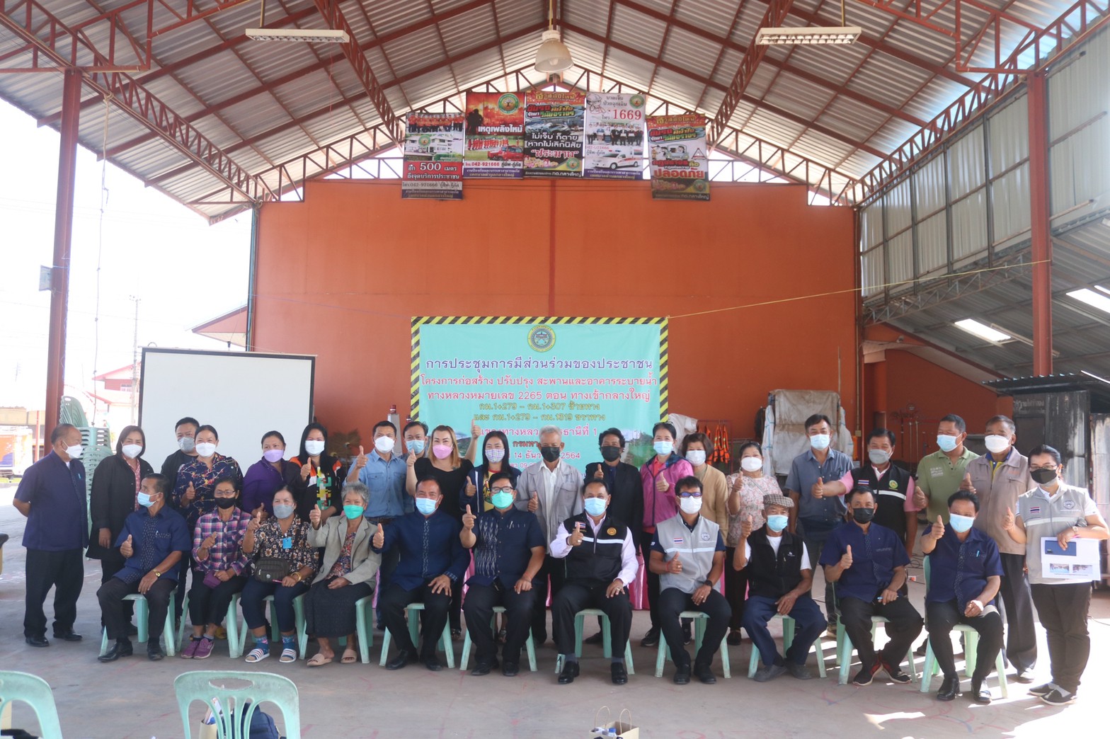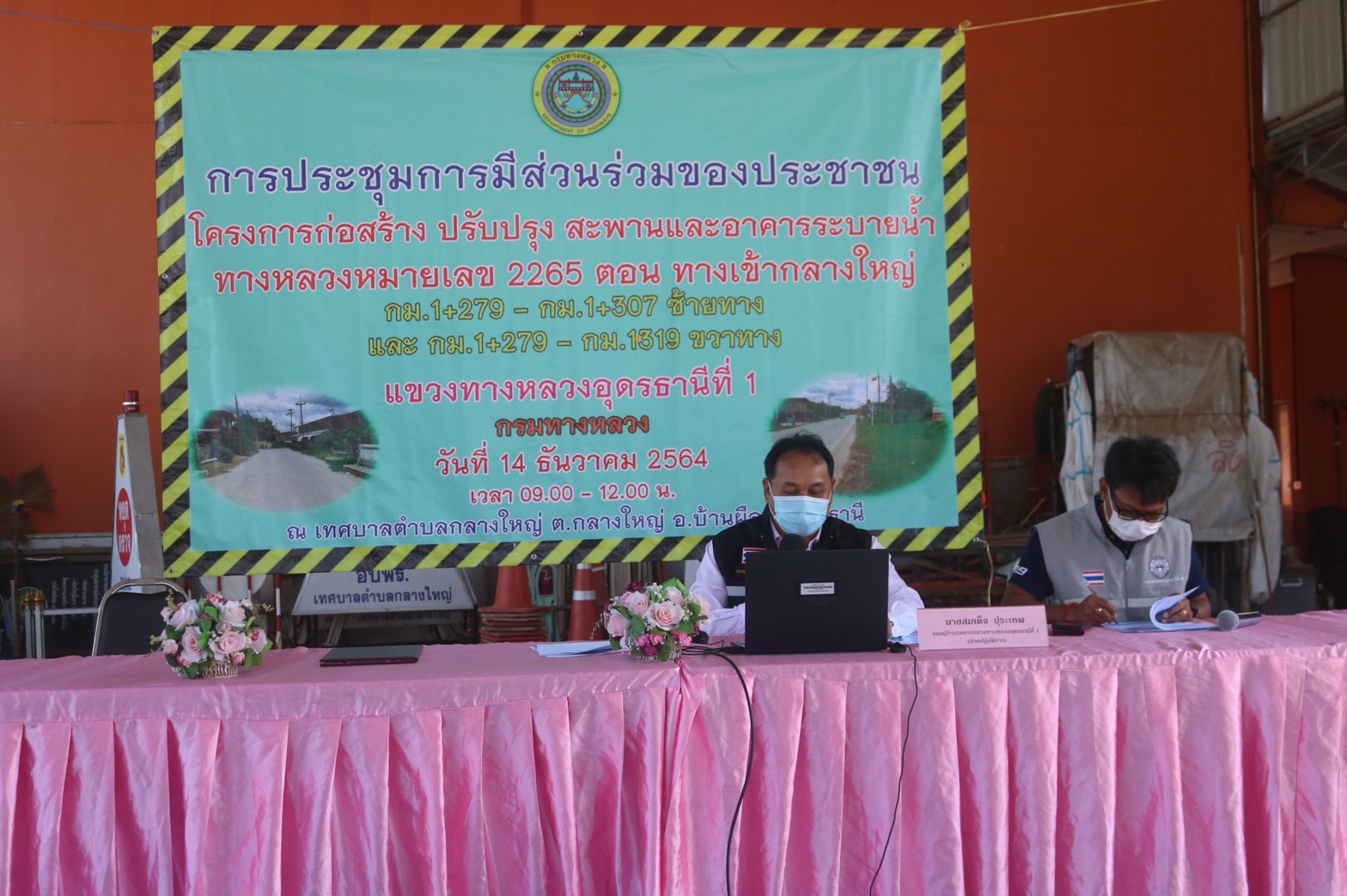 วันที่ 14 ธันวาคม 2564 เวลา 09.00 น. แขวงทางหลวงอุดรธานีที่ 1 ดำเนินการจัดการประชุมการมีส่วนร่วมของประชาชน โครงการก่อสร้าง ปรับปรุง สะพานและอาคารระบายน้ำ ทางหลวงหมายเลข 2265 ตอน ทางเข้าบ้านกลางใหญ่ กม.1+279 -กม.1+307 ด้านซ้ายทาง และระหว่าง กม.1+279 - กม.1+319 ด้านขวาทาง ณ เทศบาลตำบลกลางใหญ่ ต.กลางใหญ่ อ.บ้านผือ จ.อุดรธานี โดยมีนายมงคล มีลา นายกเทศมนตรีตำบลกลางใหญ่ เป็นประธานในพิธี วิทยากรบรรยายโครงการโดย นายสมเด็จ ปุระเทพ รอ.ขท.(ป) และนายวีระสันต์ พิรุณสุนทร หัวหน้าหมวดทางหลวงบ้านผือ ผู้เข้าร่วมประชุมเป็นผู้เกี่ยวข้องและมีส่วนได้เสียในพื้นที่ก่อสร้าง ประมาณ 100 คน
