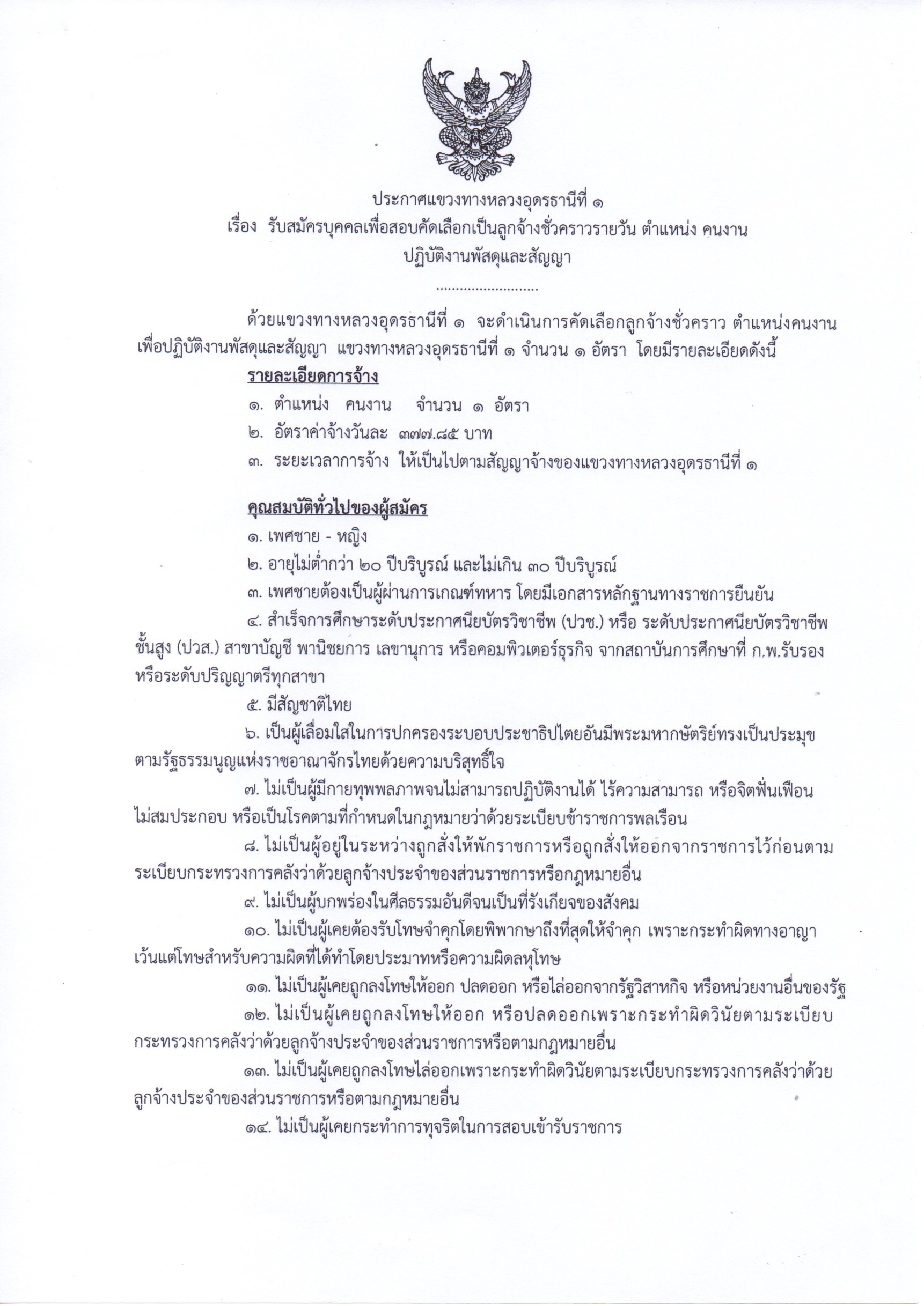ข้อมูลข่าว : ประกาศรับสมัคร ลูกจ้างชั่วคราว ตำแหน่งคนงานเพื่อปฏิบัติงานพัสดุและสัญญา