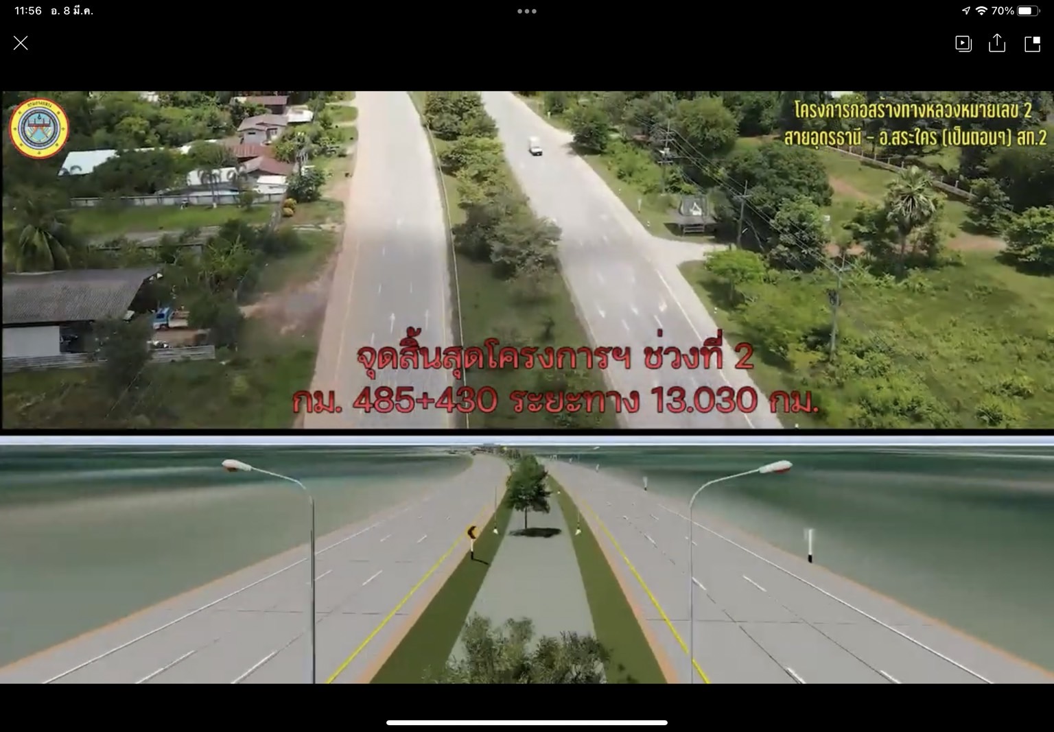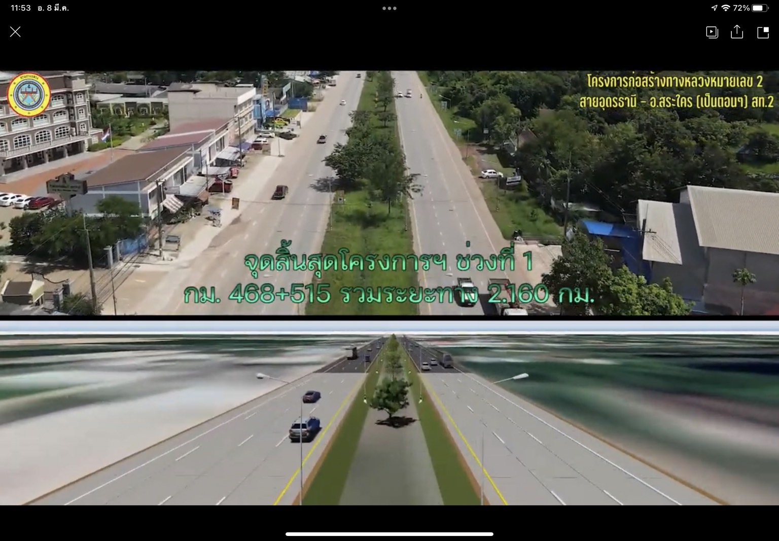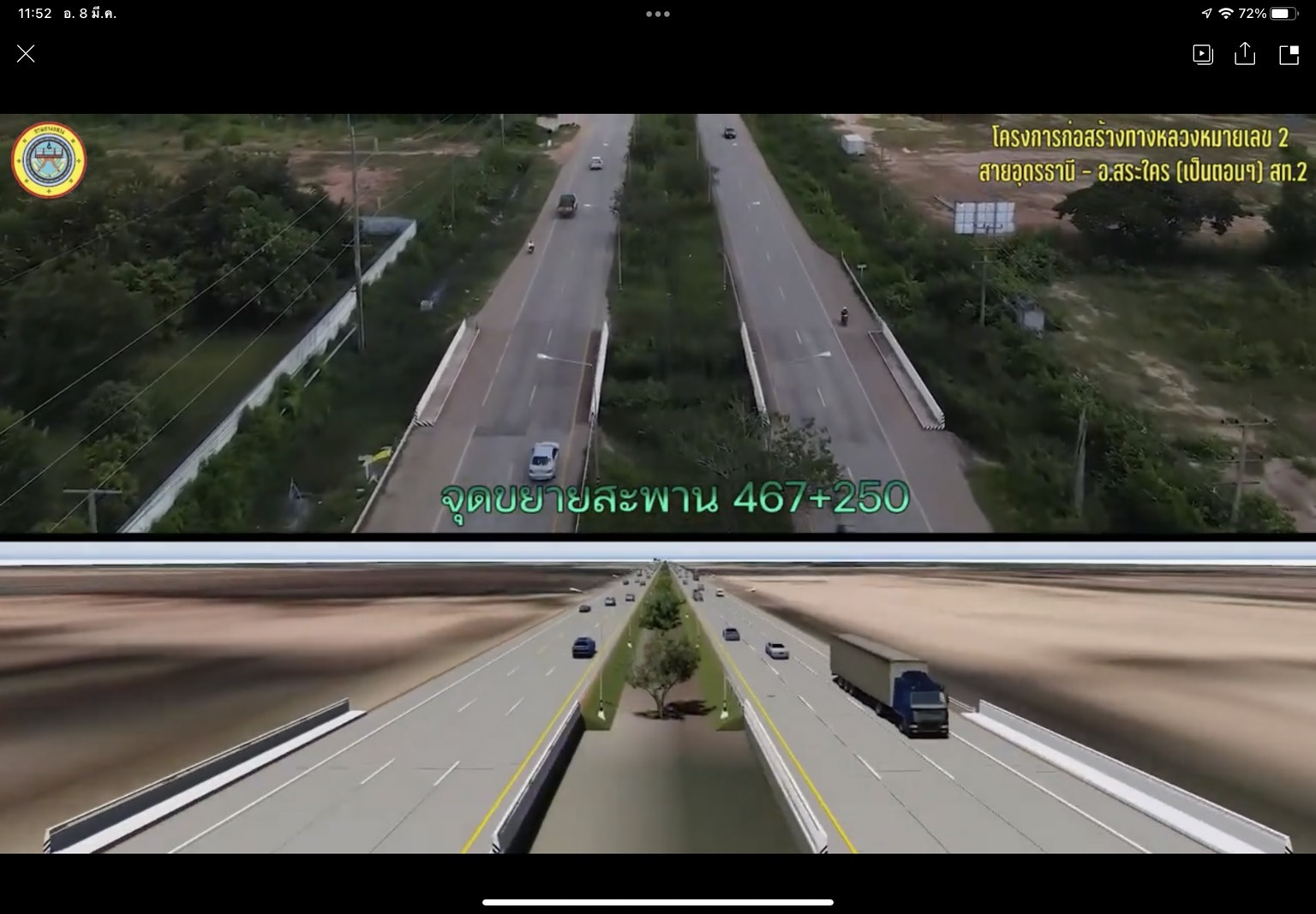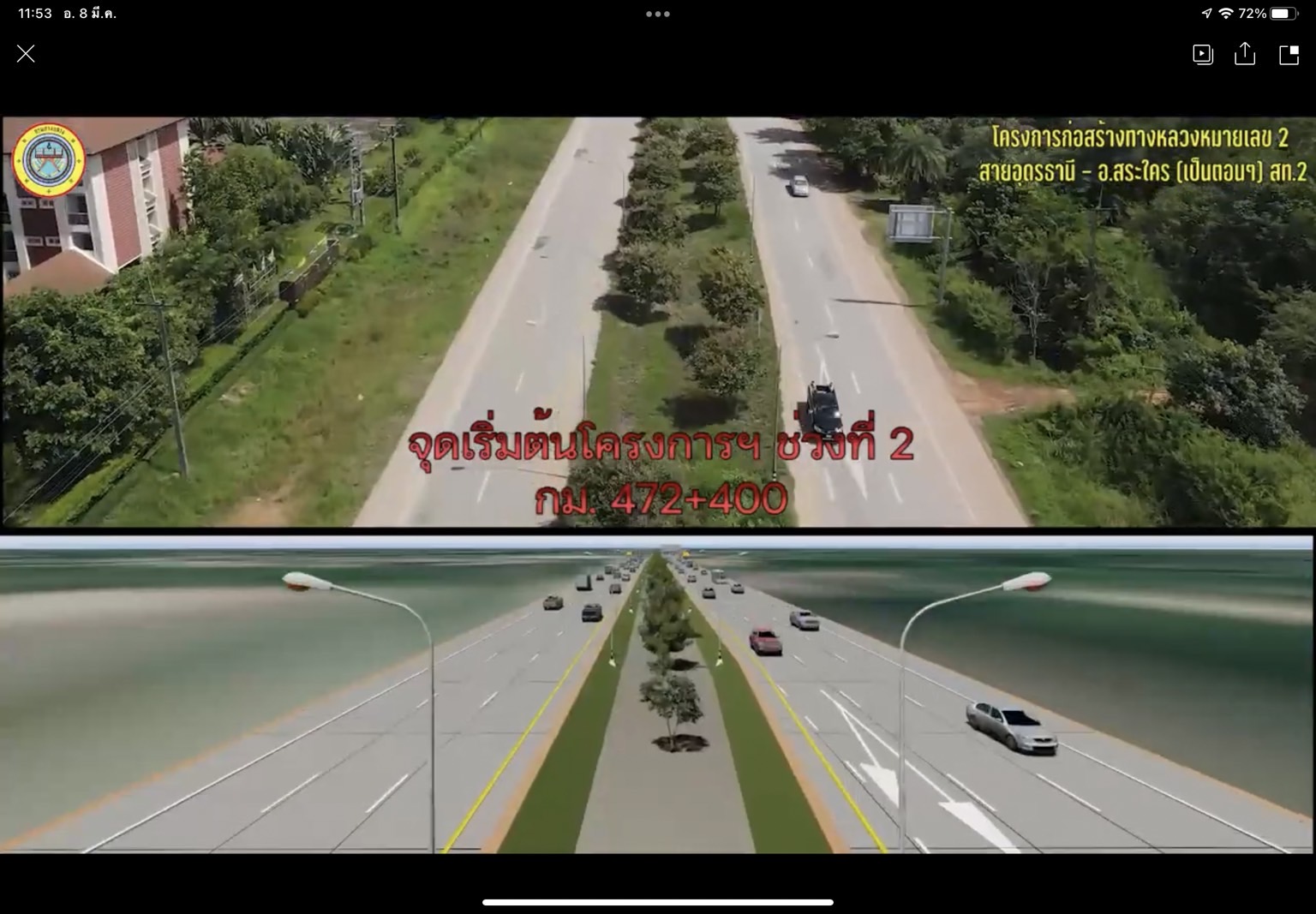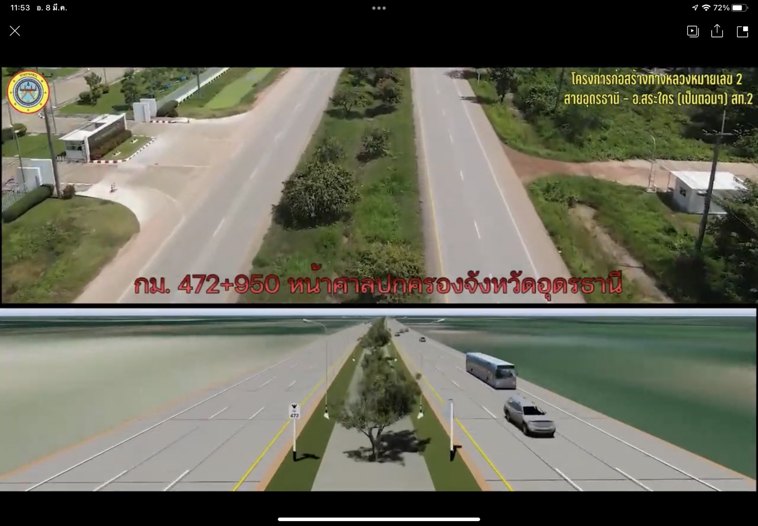 #แขวงทางหลวงอุดรธานีที่1 ประชาสัมพันธ์#โครงการก่อสร้างสายอุดร-สระใครภาพเสมือนจริง 3D กับภาพจริงก่อนดำเนินงาน