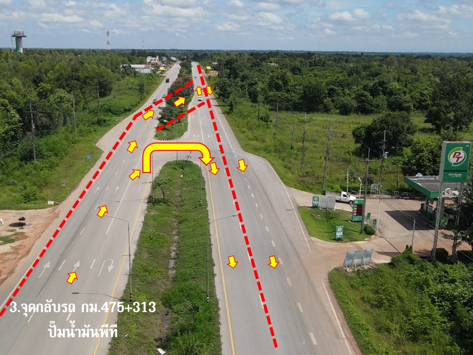 การเบี่ยงการจราจรการเดินรถในเส้นทางที่ก่อสร้าง ในทางหลวงหมายเลข 2 ตอน อุดรธานี - น้ำสวย ช่วงระหว่าง กม.472+267.000 และ กม.475+314.500 (จุดกลับรถ-จุดกลับรถ)
