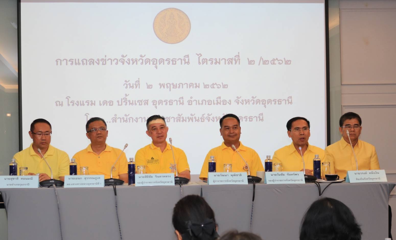 นายวัฒนา พุฒิชาติ ผู้ว่าราชการจังหวัดอุดรธานี พร้อมด้วย นายสิธิชัย จินดาหลวง นายวันชัย จันทร์พร รองผู้ว่าราชการจังหวัดอุดรธานี นายวรงค์ คลังเงิน ท้องถิ่นจังหวัดอุดรธานี นายอเนก สุวรรณภูเต ผู้อำนวยการแขวงการทางจังหวัดอุดรธานี นายสุชาติ ทอนมณี นายอำเภอกุมภวาปี ร่วมกันแถลงผลการดำเนินงานในช่วง 3 เดือนที่ผ่านมา และการขับเคลื่อนกิจกรรมสำคัญในช่วงไตรมาส 3 และไตรมาส 4 ของปีงบประมาณ 2562 โดยมีหัวหน้าส่วนราชการ หน่วยงานภาครัฐ เอกชน สื่อมวลชนทุกแขนงในพื้นที่เข้าร่วมรับฟัง