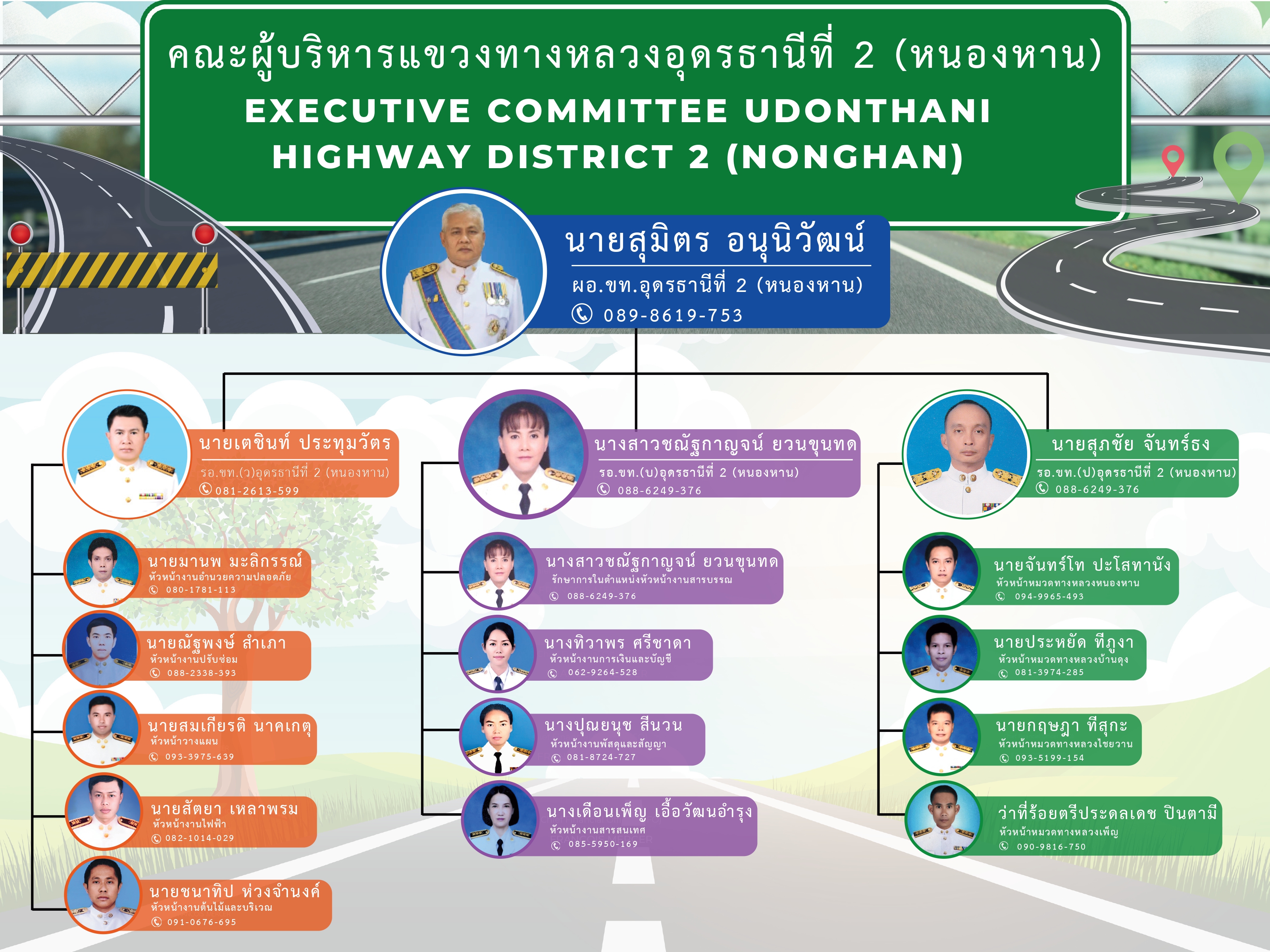 เนื้อหาเพจ : ผังผู้บริหาร แขวงทางหลวงอุดรธานีที่ 2 (หนองหาน)